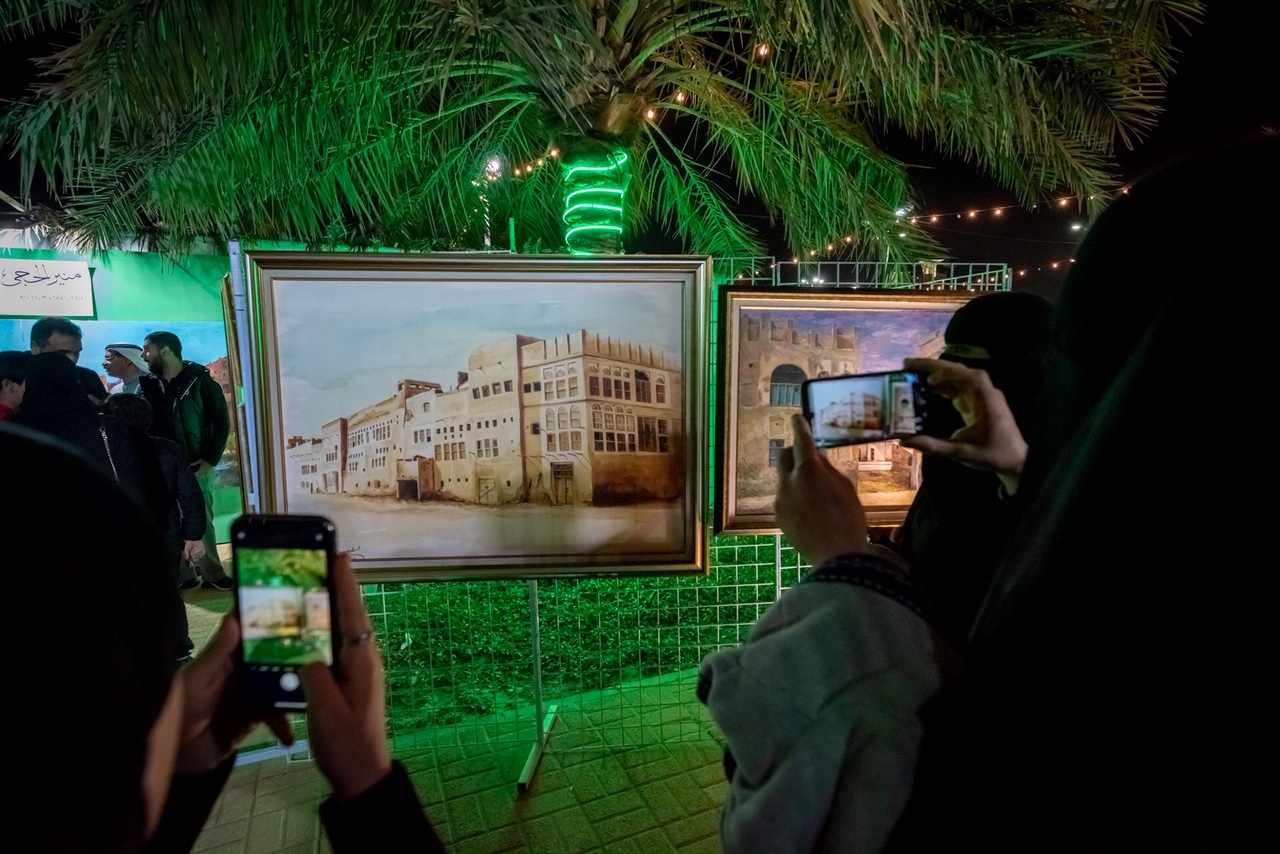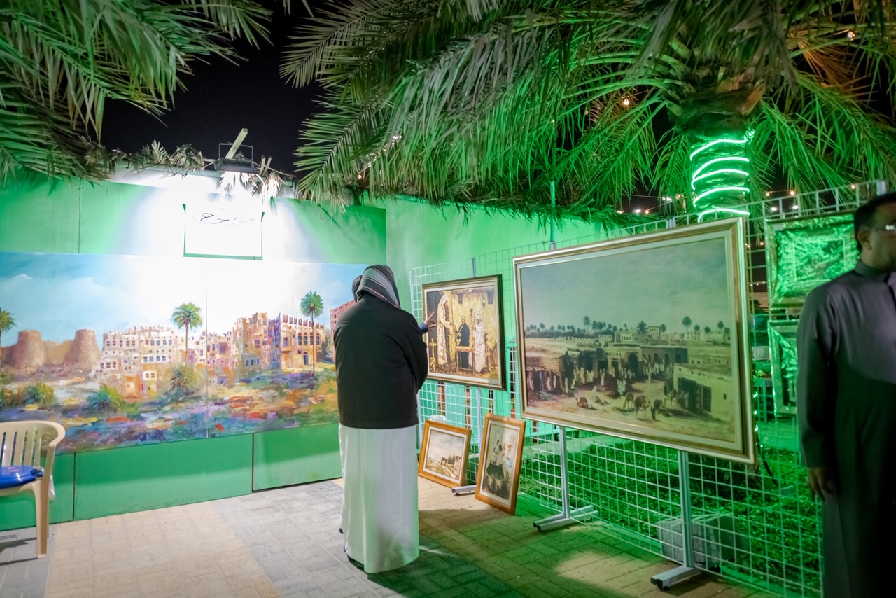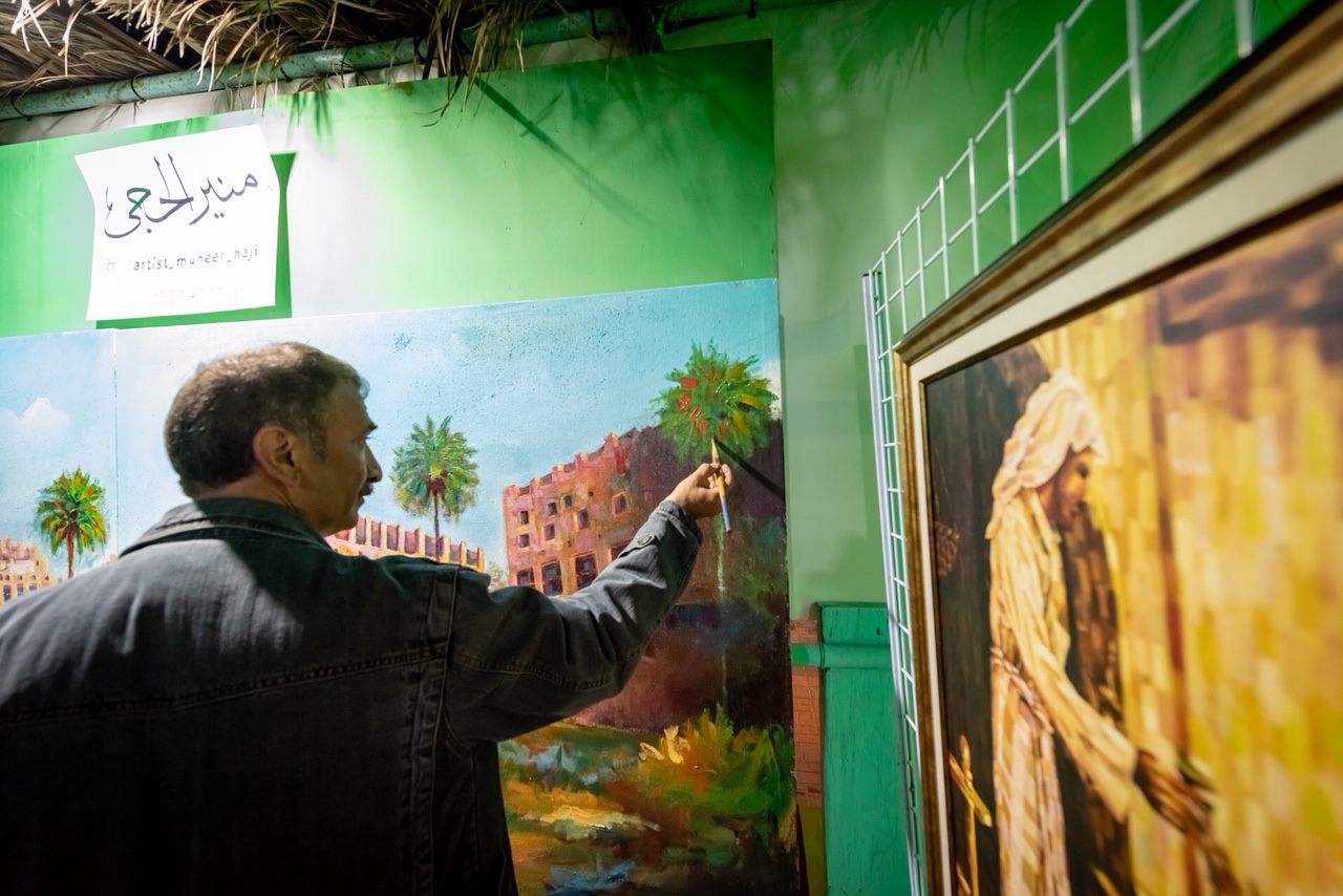 وبين قراره في اليوم الثاني بزيادة حجم مشاركته في المهرجان بجلب بعض اللوحات الخاصة بالمناسبة والتراث ليتحول ركنه إلى معرض مصغر بعشر لوحات.