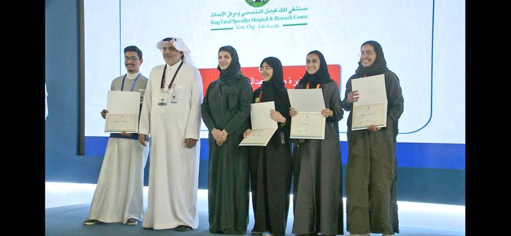 1 - جائزة خاصة مقدمة من الشريك العلمي مستشفى الملك فيصل التخصصي ومركز الأبحاث بالرياض للطالبة زهراء بنت عبد العزيز بن عبد المعين الخميس من المدرسة الثانوية الثامنة بالقطيف - مجال علم الأحياء الخلوية الجزيئية.
