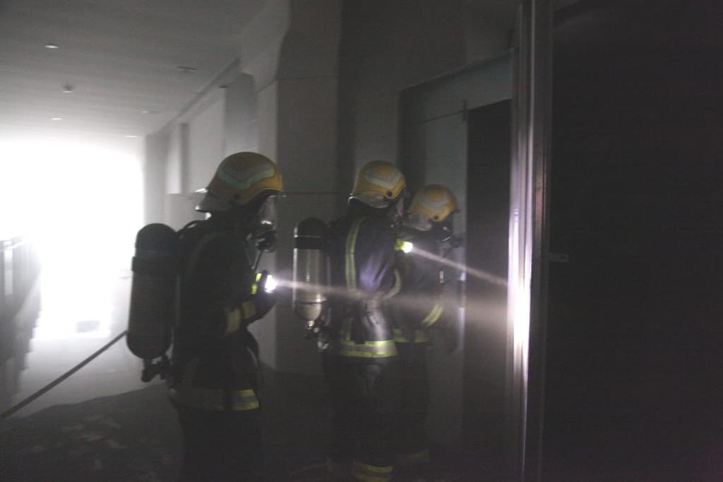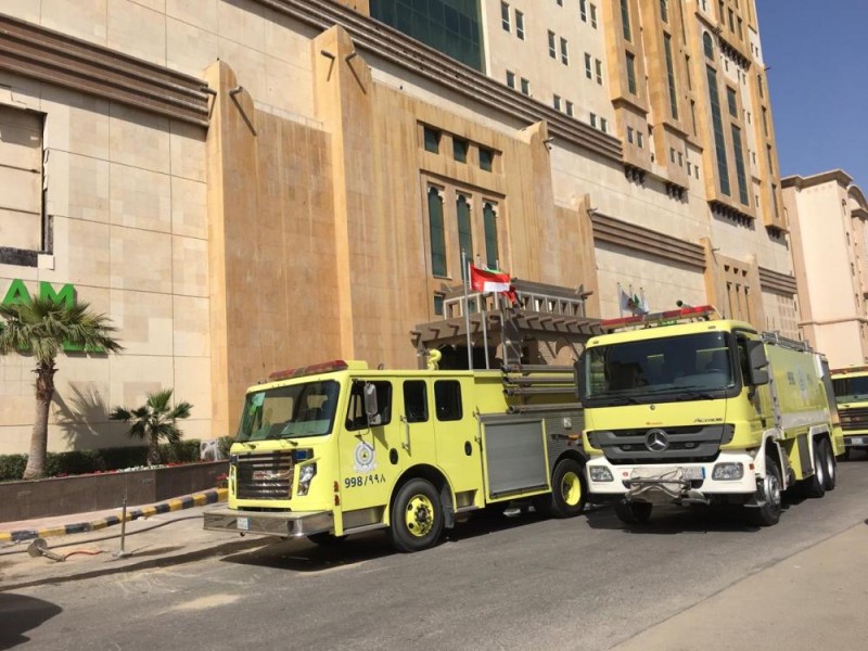 وأضاف وبناءً علئ ذلك تم اخلاء عدد «219» شخص من المجمع والفندق وعزل المنطقة المتضررة ومباشرة أعمال الدفاع المدني «الإنقاذ والاطفاء» بالموقع.