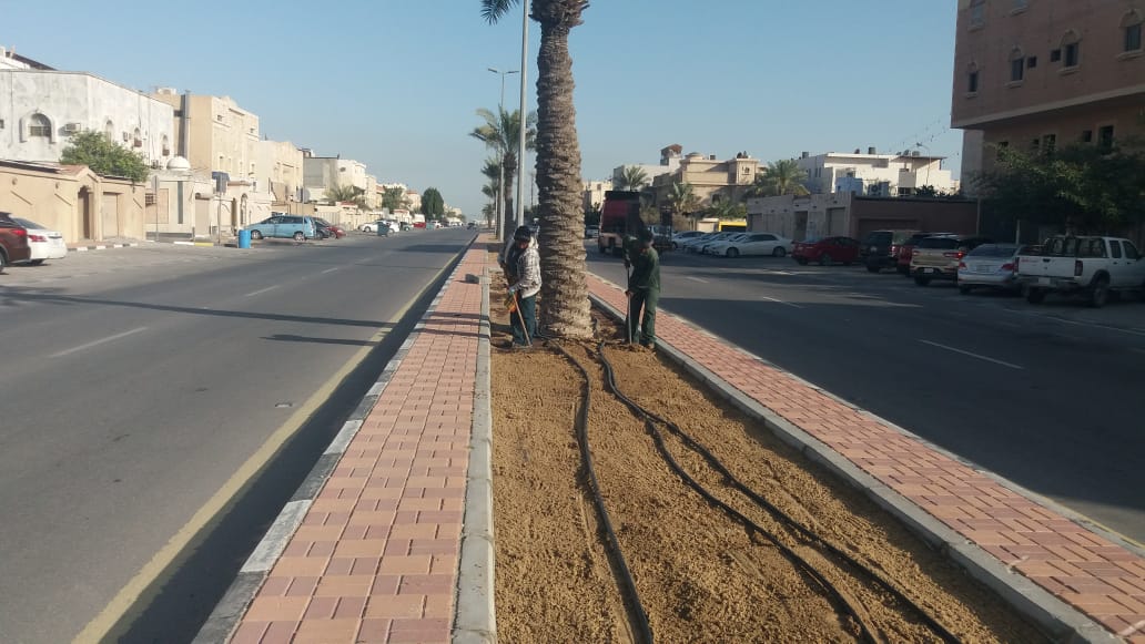 انهت إدارة الحدائق والتشجير في بلدية محافظة القطيف أعمال الردم والتسوية وتنفيذ شبكات الري وزراعة الأشجار والزهور بشارع الحسين بن علي في تاروت.