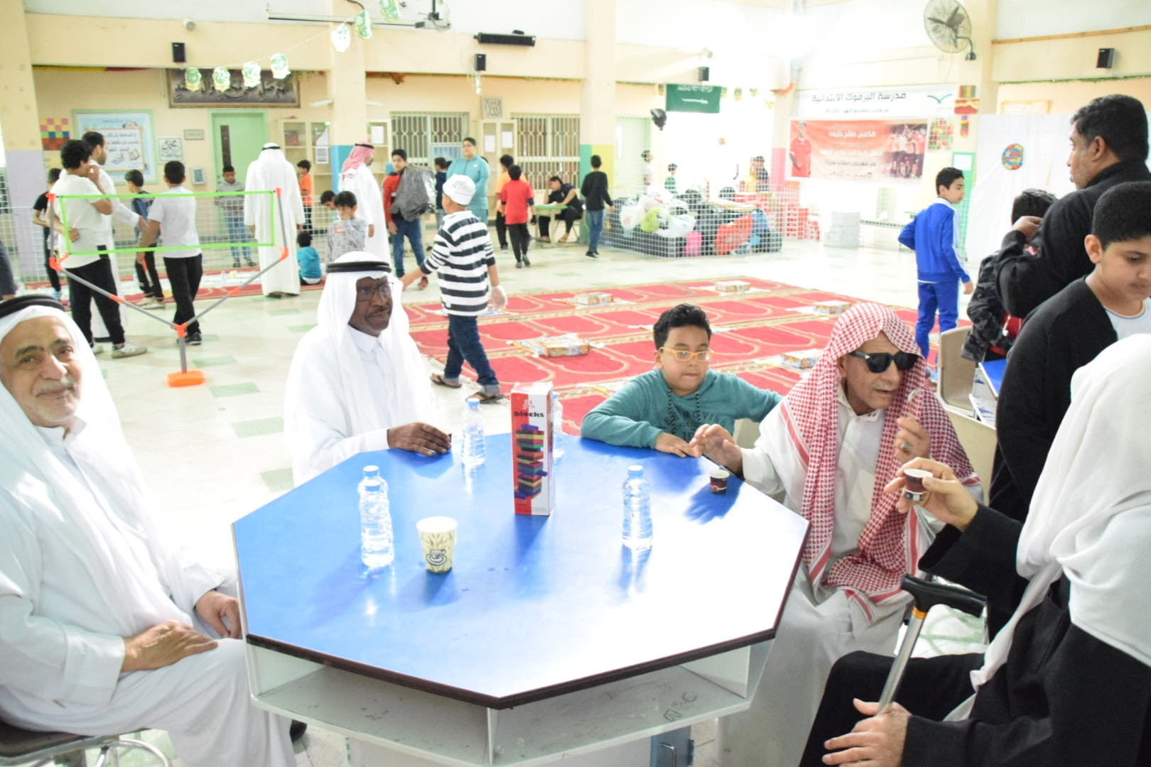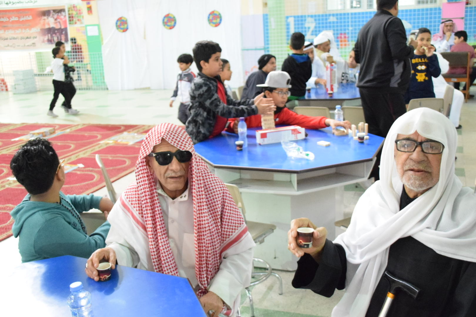 شارك 100 جد أحفادهم في مهرجان مدرسي أقامته مدرسة اليرموك الابتدائية بصفوى بعنوان «الأجداد والأحفاد 4 جدي في مدرستي».