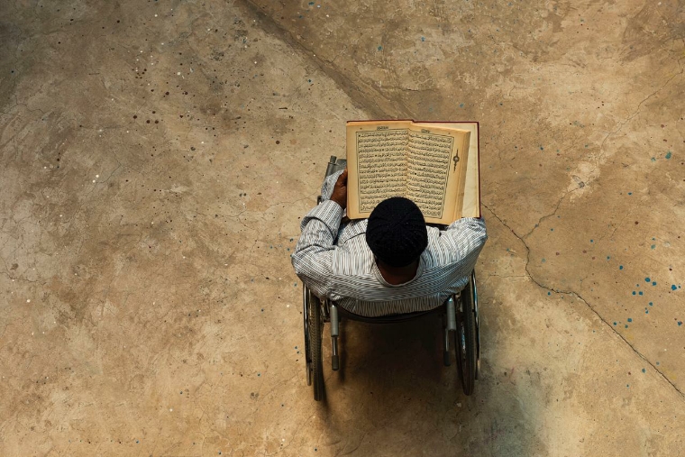 وبينت طلبها من الرجل التقاط صورة له مع القرآن الكريم من الطابق الثاني.
