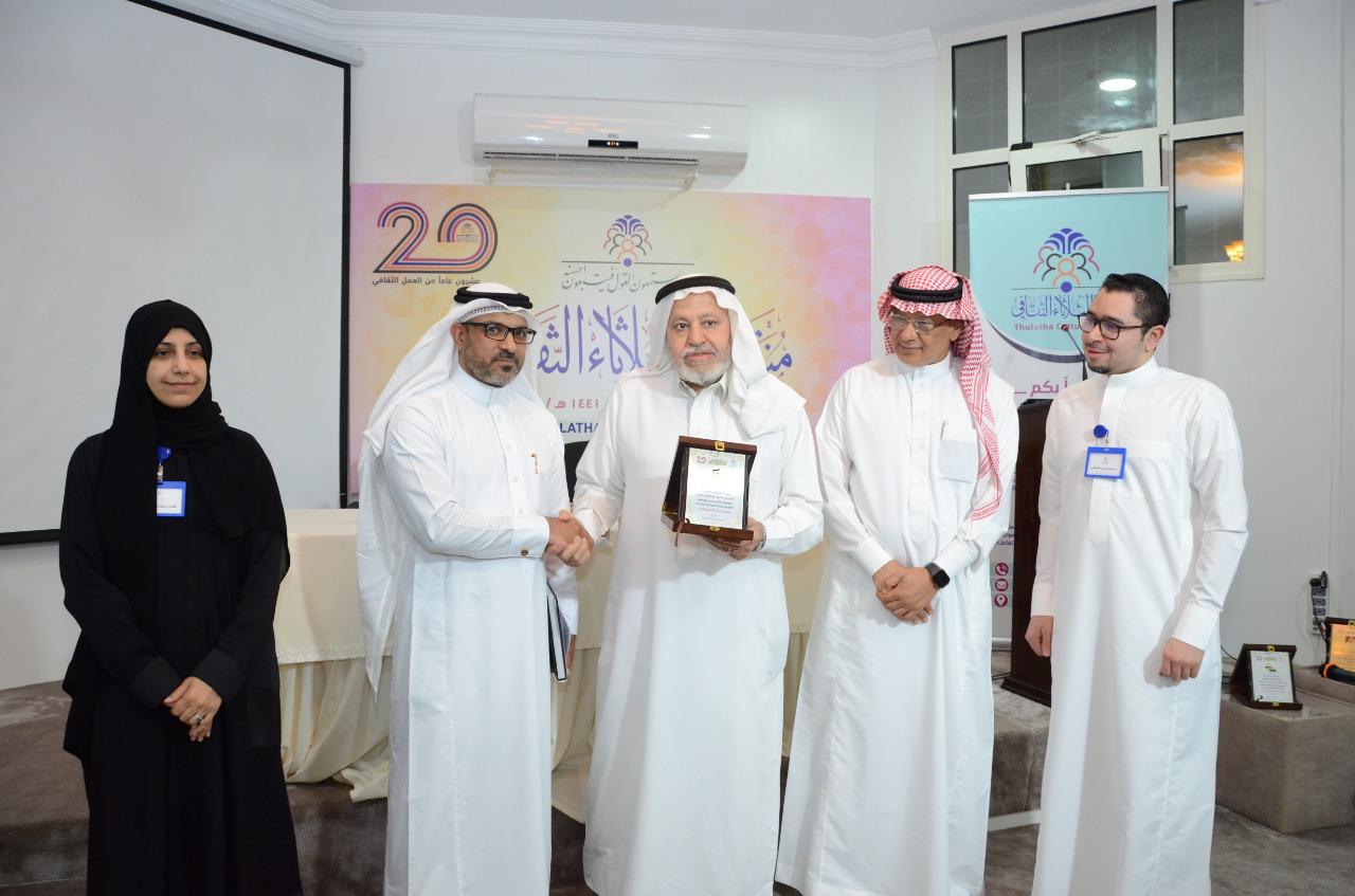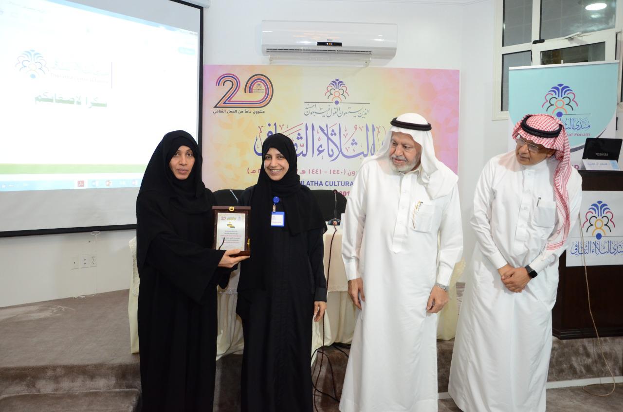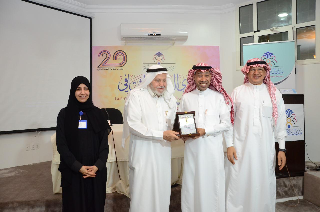 وقدم الدروع التقديرية للفوتوغرافي محمد الخراري ومديرة مركز خطوة واعدة للإرشاد الأسري الأهلي افتخار الدهنيم وللكاتب عيسى العيد الذي وقع كتابه ”إرادة التقدم“ في نهاية الأمسية.