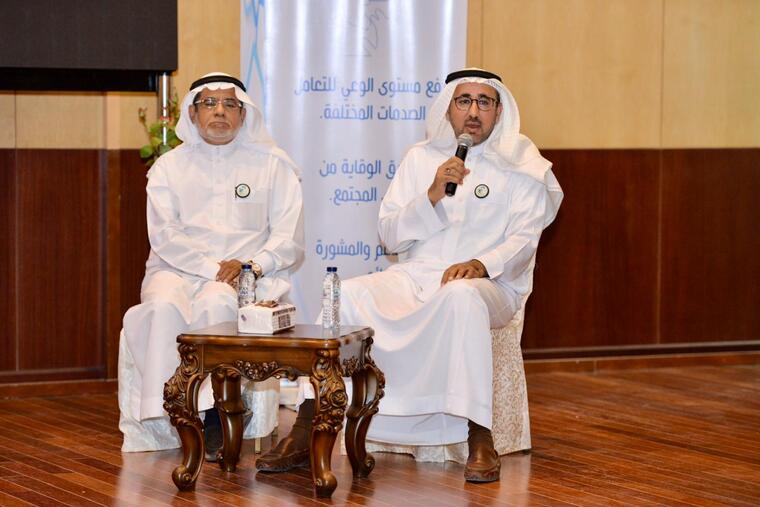وألقى الأخصائي النفسي صالح البراك رئيس مجلس إدارة جمعية مساندون كلمة تناول فيها التعريف برؤية ورسالة الجمعية وأهدافها.