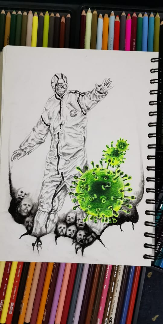 بادرت مجموعة من الرسّامين برسم عدة لوحات كمحاولة منهم لتوعية المجتمع بخطر وباء كورونا الذي بدأ ينتشر في دول العالم، وأهمية الوقاية منه باتباع الإرشادات الصحية.