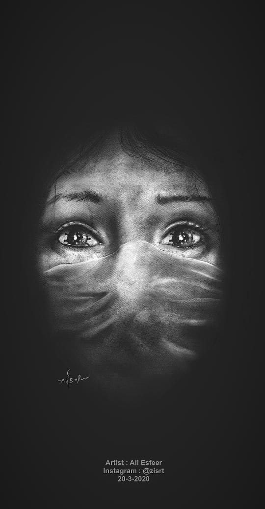 وشارك الفنان علي صفير برسم لوحة بواسطة الرسم الرقمي، والذي جسّد فيها حالة الهلع المنتشرة في أرجاء العالم بسبب فيروس كورونا المستجد.