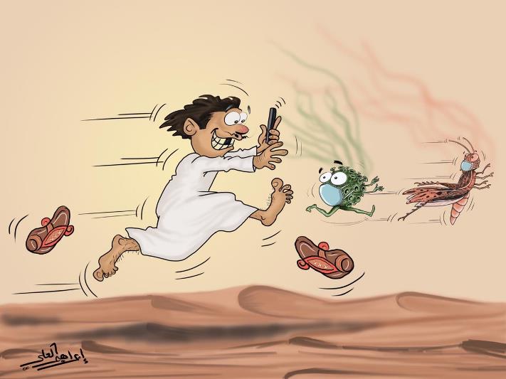 رسم الفنان إبراهيم العلي لوحة كاركتيرية ليجسد حالة اللامبالاة عند البعض الذي لايتبع التعليمات والإجراءات الاحترازية.