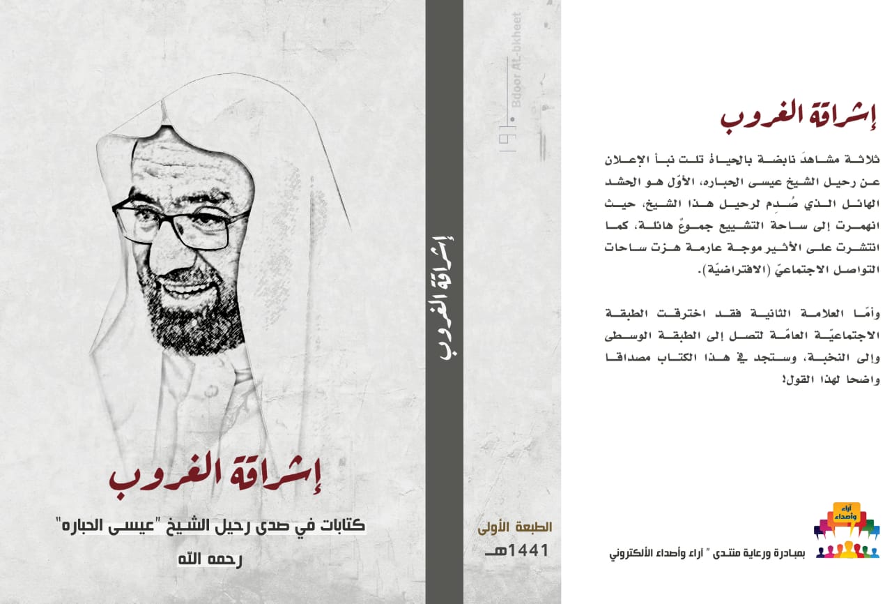بادر فريق من أعضاء مجموعة ثقافية بالواتساب ”آراء وأصداء“ إلى جمع بعض ماكتب وقيل في الشيخ عيسى الحباره بعد وفاته في كتيب عنوانه ”إشراقة الغروب“.