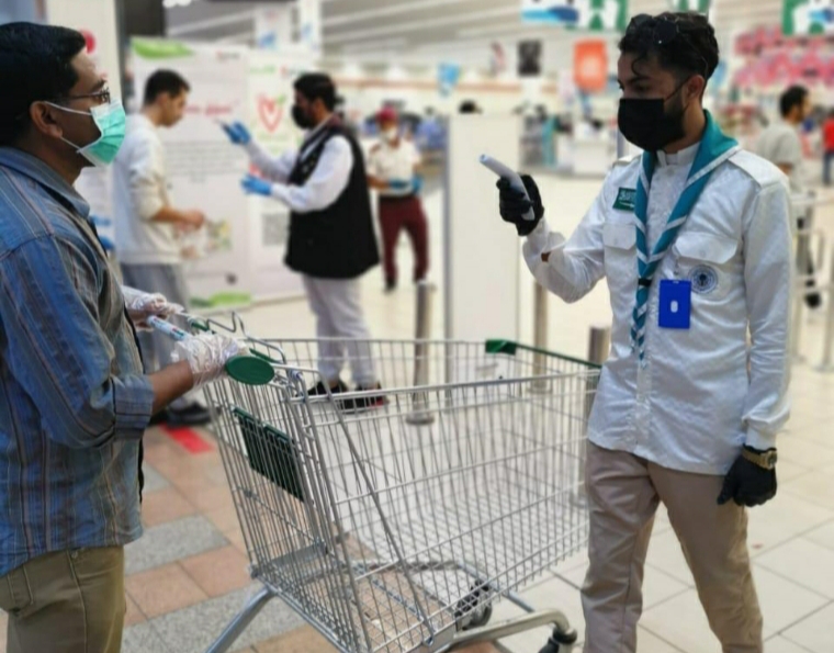 وانتشرت فوق الكشافة في أماكن التجمعات ومنها الأسواق للتنظيم، وتوزيع أدوات التعقيم والحماية للمرتادين.