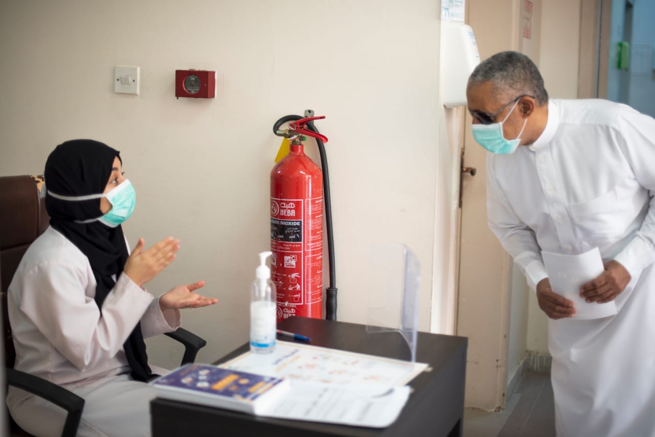 وقال استقبلنا الطاقم الطبي هناك بروحية عالية مثنيا على اهتمامهم بالفواصل بين الكراسي والتعقيم ولبس الكمام قبل الدخول من المراجعين وغيرهم.
