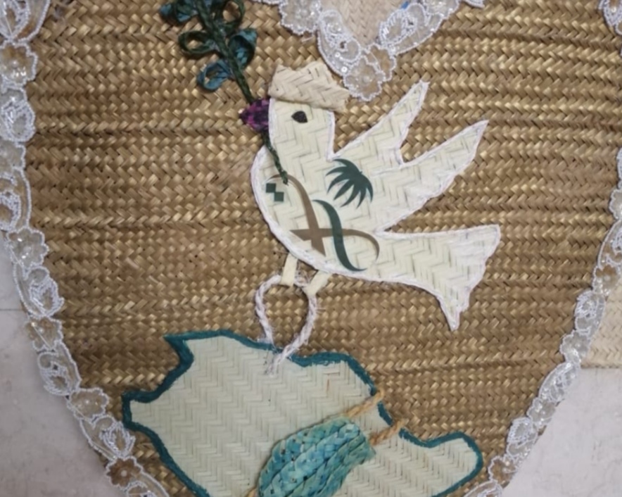 حولت الفنانة التشكيلية معصومة الحمدان خوص النخيل للوحة فنية واهدته إلى أبطال الصحة الذين يحاربون فايروس كورونا الجديد.