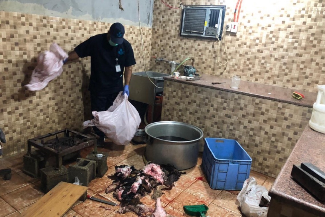 تمكنت بلدية محافظة القطيف، أمس ”السبت“، من ضبط مسلخاً عشوائياً في إحدى المزارع، يقوم بنشاط تصنيف رؤوس المذبوحات وأطرافها، والشحوم، واللحوم دون ترخيص وفي بيئة غير صحية.