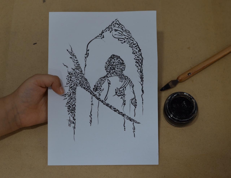 وقالت لـ جهينة الإخبارية إنها المرة الأولى التي تُجرب فيها الرسم باستخدام الخط الديواني العثماني، حيث كانت لها لوحات منذ كانت صغيرة باستخدام الريشة والألوان.