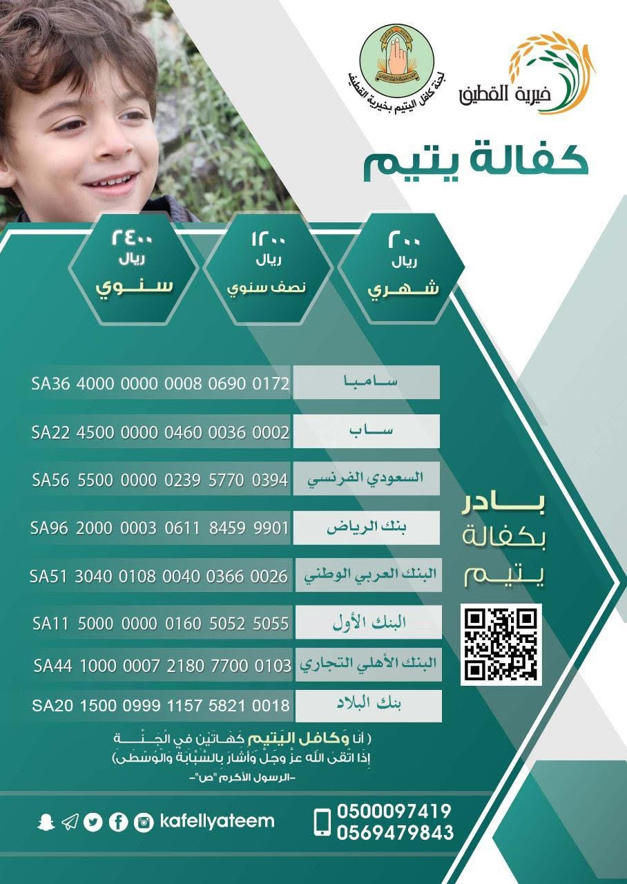خيرية القطيف تدعو لكفالة ودعم 343 يتيمًا
