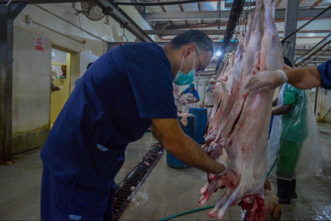 وقال تبلغ مساحة نقطة الذبح 450 متراً مربعاً، كما تصل الطاقة الاستيعابية للمسلخ إلى 200 رأس في الساعة من الأغنام.
