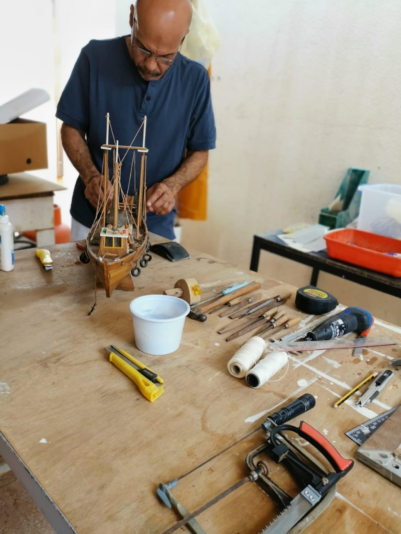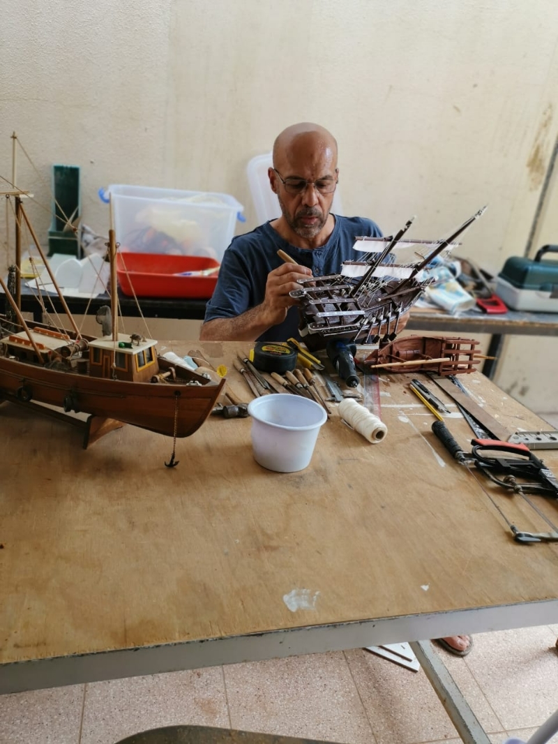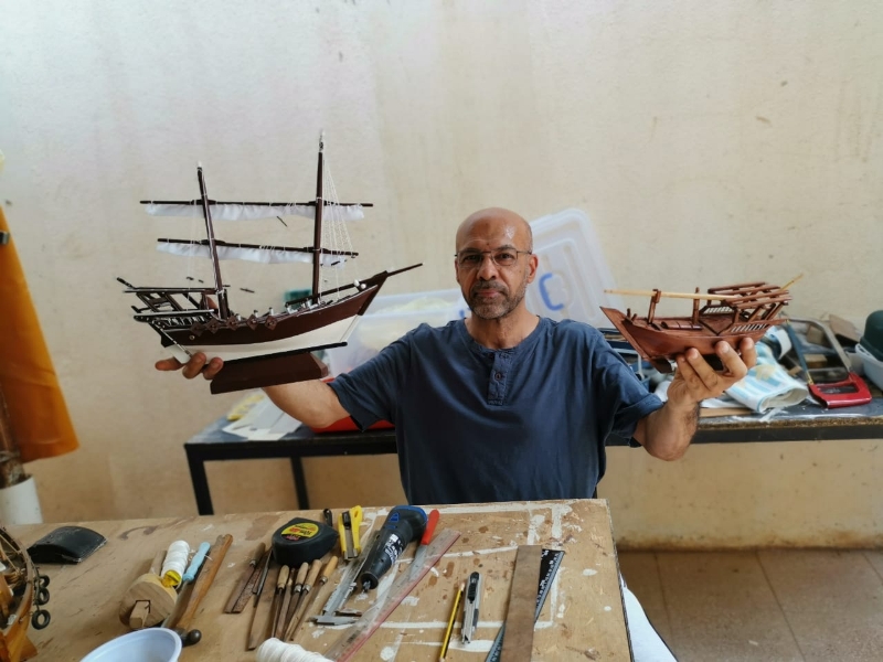 وختم حديثه بأنه خلال فترة الحجر أنجز مجموعة كبيرة من السفن وابتكر أشياء جديدة من السفن بدمج السفينة المصنوعة على الطريقة الأوروبية مع السفينة المستخدمة في الخليج.