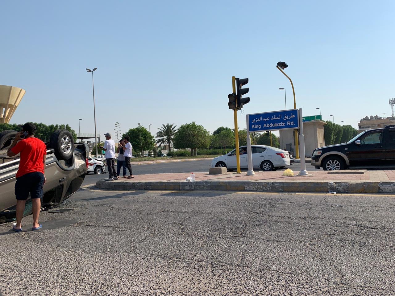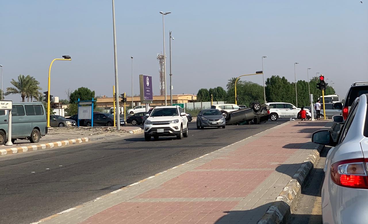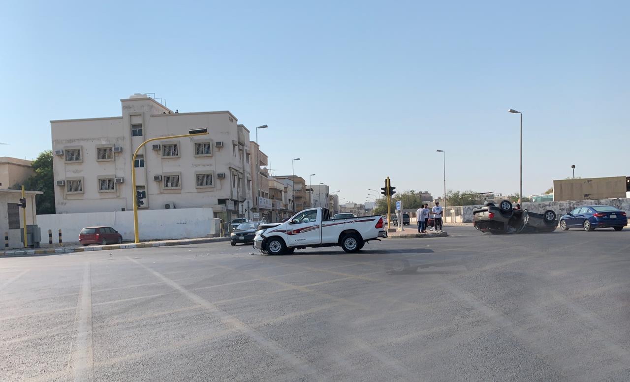 بالصور.. انقلاب سيارة في حادث مرّوع وسط مدينة القطيف