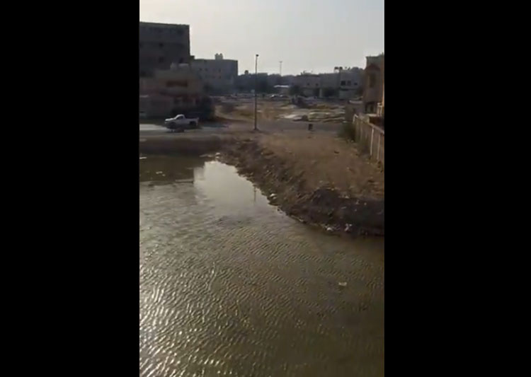 نشر أحد المواطنين في موقع التواصل الاجتماعي ”تويتر“ مقطع فيديو يظهر مياه متجمعة في أرض خالية بالقرب من البيوت في مدينة سيهات.