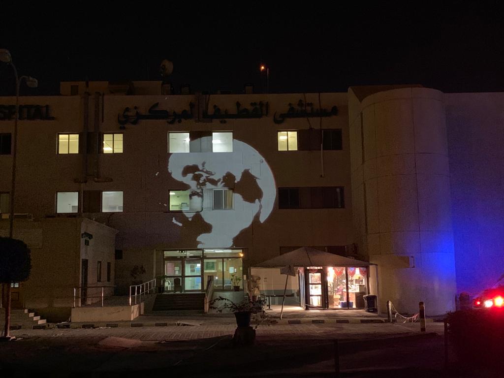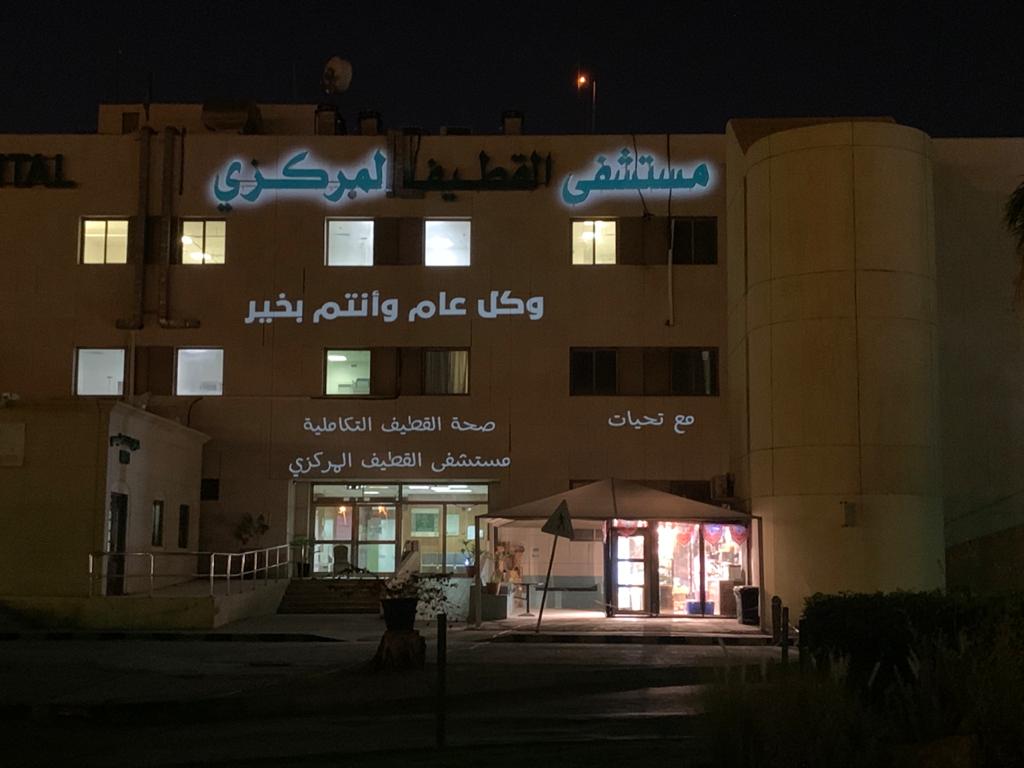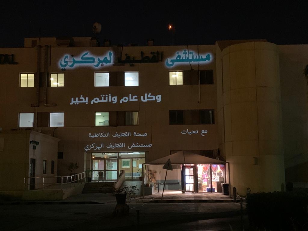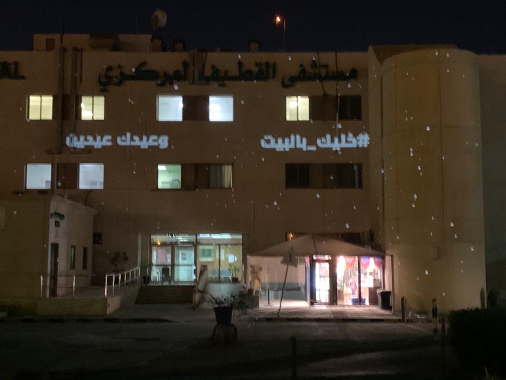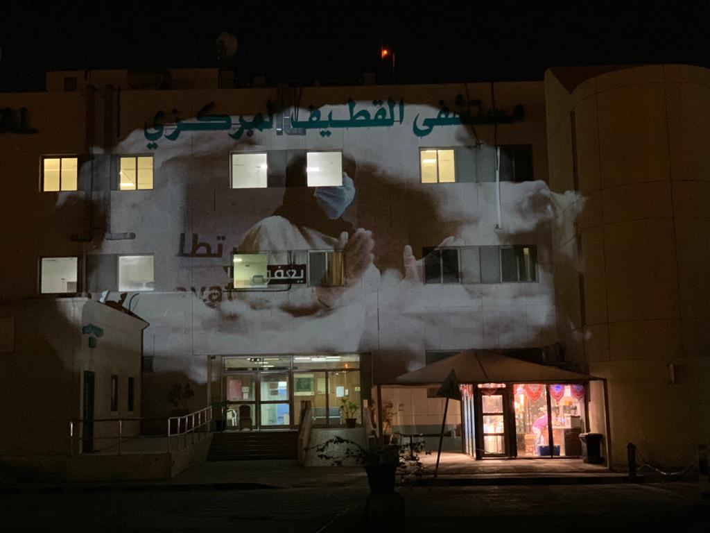 بعث مستشفى القطيف المركزي رسالة استثنائية في ظل الظروف غير العادية التي يمر بها العالم، من خلال عرض ضوئي ضخم غطى واجهة المستشفى بلوحة فنية ثلاثية الأبعاد