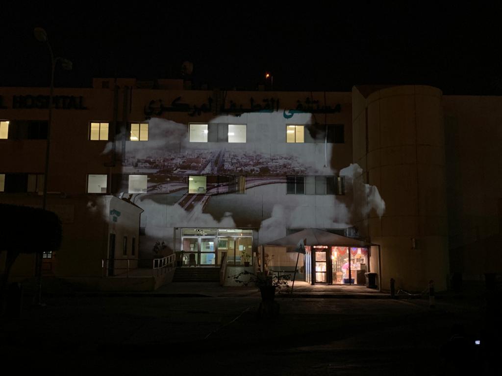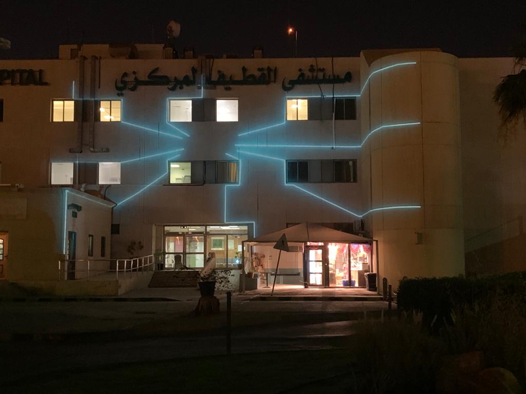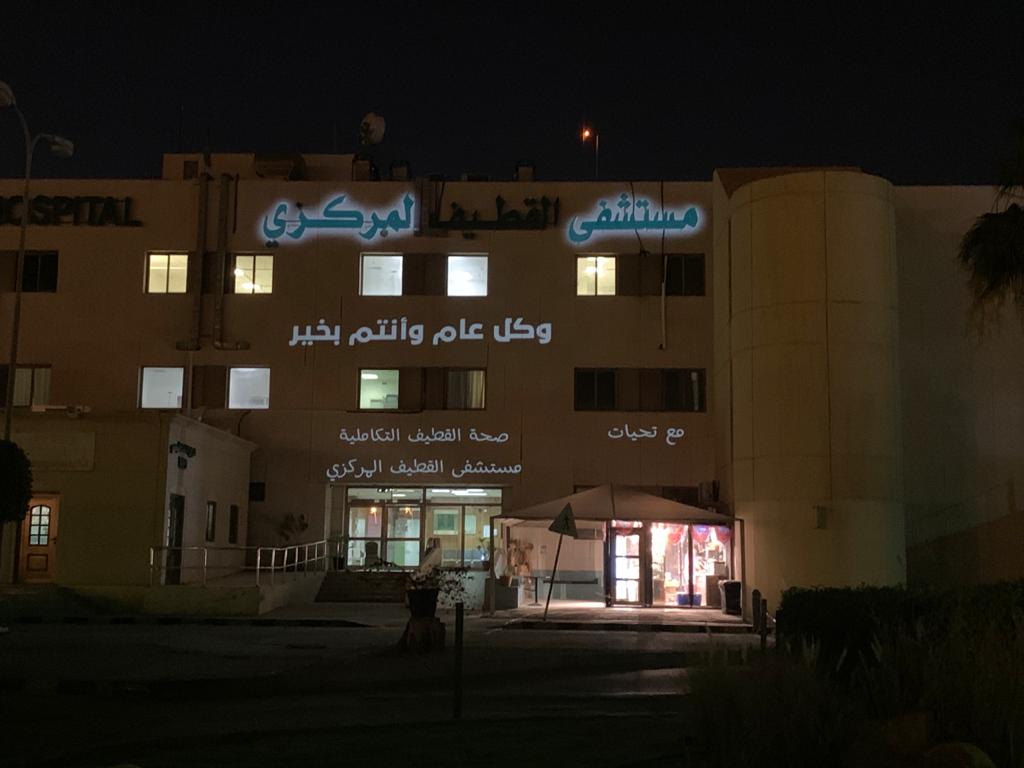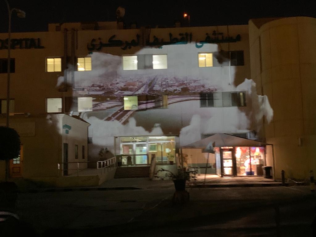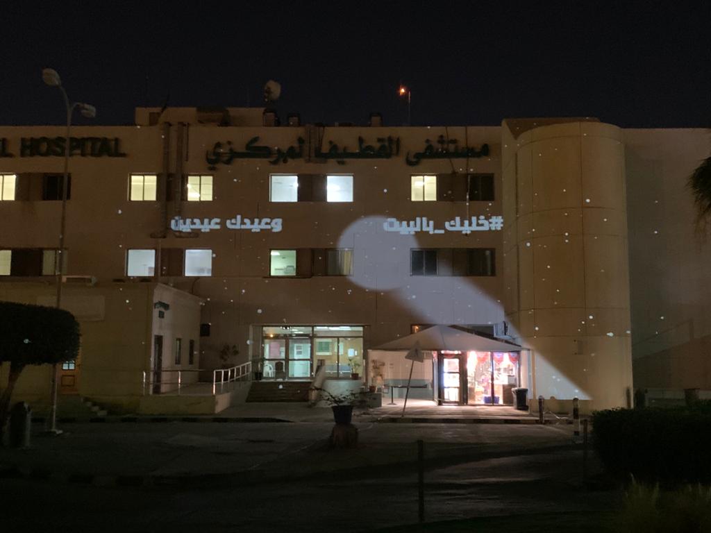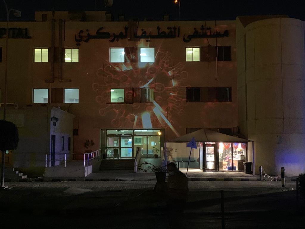 بعث مستشفى القطيف المركزي رسالة استثنائية في ظل الظروف غير العادية التي يمر بها العالم، من خلال عرض ضوئي ضخم غطى واجهة المستشفى بلوحة فنية ثلاثية الأبعاد