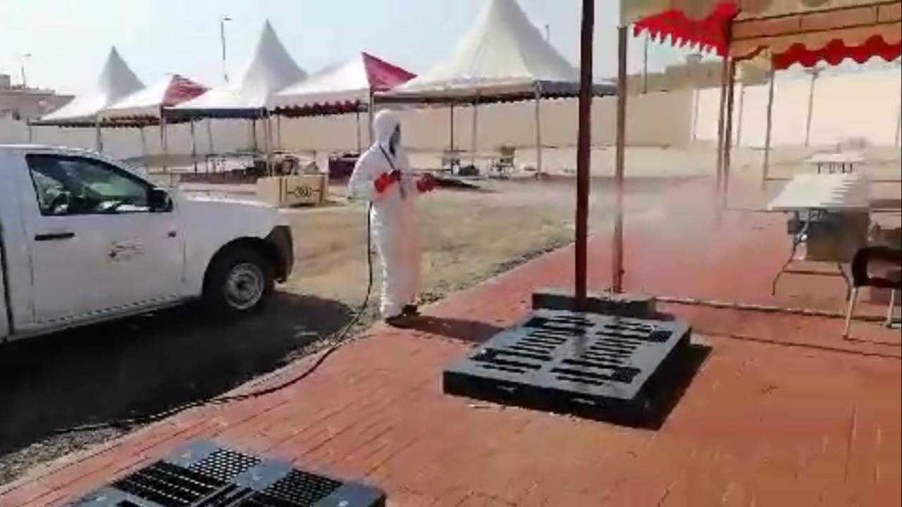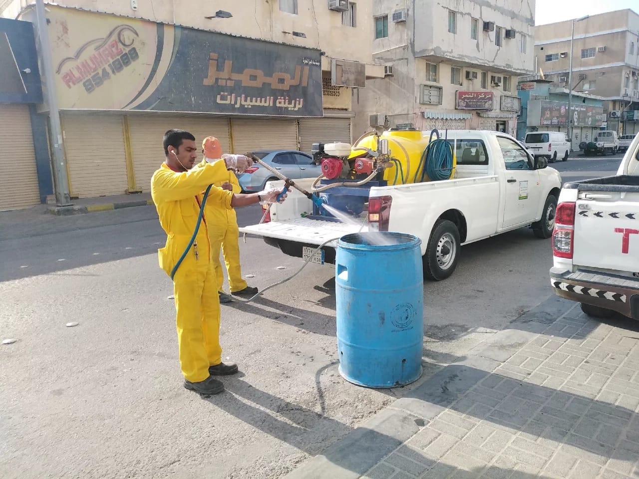 تواصل بلدية محافظة القطيف أعمال التطهير والتعقيم والوقاية في محافظة القطيف خلال وقت منع التجول في أيام عيد الفطر المبارك، استكمالاً لجهودها الاحترازية في أعمال الإصحاح البيئي على نطاق واسع في مدن وقرى المحافظة للتصدي لانتشار فيروس كورونا المستجد «COVID - 19».