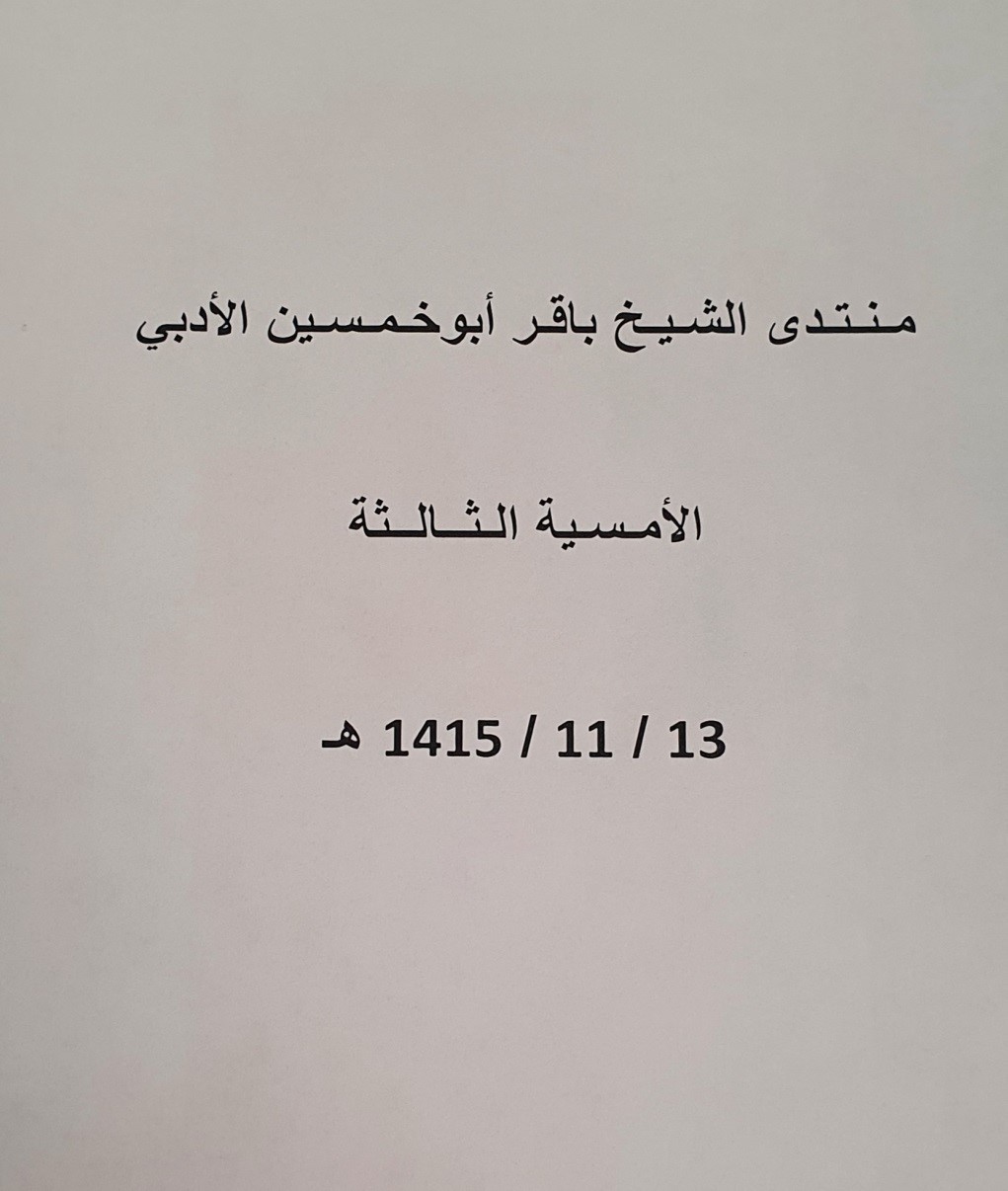 كان عريف هذه الأمسيات الأستاذ الشاعر عبدالله محمد بوخمسين، وكلي أمل بأن يقيض الله لهذه البحوث بالنشر وأن ترى النور لأنها قيمة جدا.