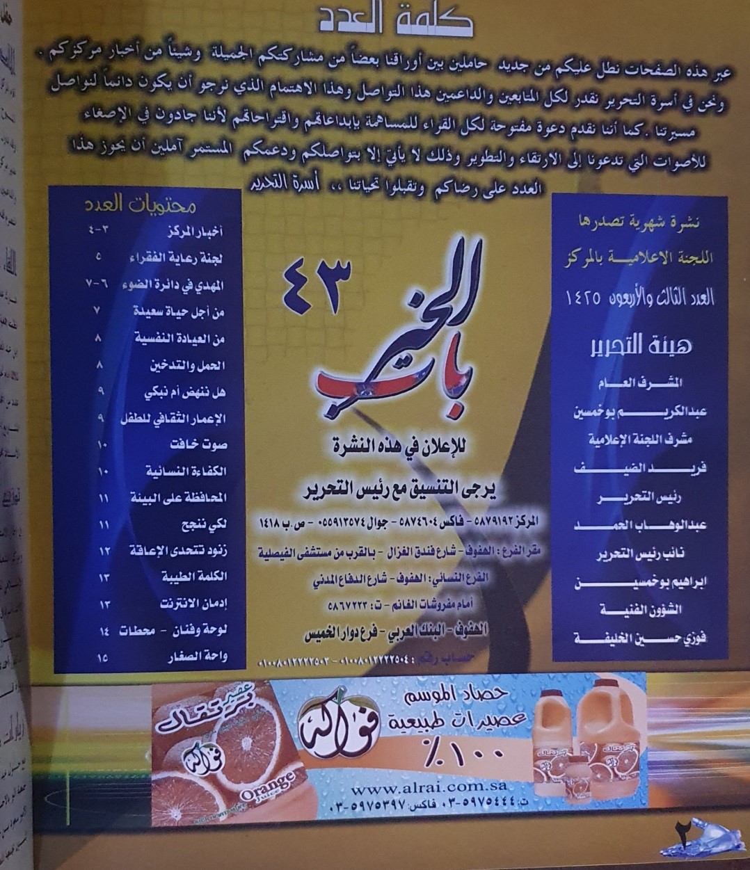 في هذه الفترة انشأت جمعية العائلة مجلة داخلية أسمتها «مجلة براعم النور» وذلك لتشجيع أبناء العائلة بالكتابة وتنمية المهارات عندهم. أصدرنا منها ستة أعداد وكُلِفْت من قبل الجمعية بالإشراف عليها، وشاركني في التنسيق والإخراج الأستاذ علي محمد الياسين بوخمسين. توقف إصدار المجلة لأسباب قاهرة ربما تذكر في المستقبل. ولا أزال أحتفظ ببعض أعدادها.
