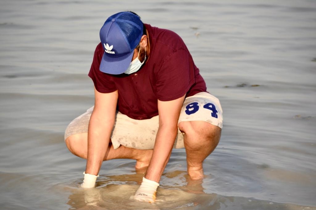 رصدت عدسة مصورة «جهينة الاخبارية» الفوتوغرافية فاطمة ال اسماعيل، مشاركة المتطوعين في الحملة التي نظمتها بلدية تاروت، عصر اليوم لتنظيف شاطئ الرملة البيضاء تحت عنوان ”شاطئنا مسؤوليتنا“.