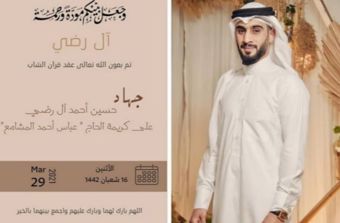 احتفلت عائلة آل رضي والمشامع في سيهات مساء يوم الإثنين بعقد قران الشاب جهاد حسين أحمد آل رضي على كريمة الحاج عباس أحمد المشامع وسط فرحة الأهل والأصدقاء ومحبي العريسين.