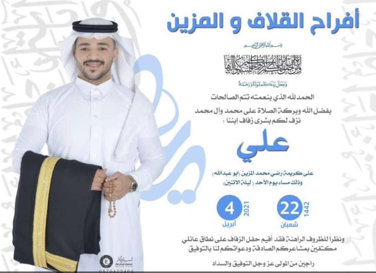تحتفل عائلة القلاف والمزين في التوبي مساء يوم الأحد بزفاف الشاب علي القلاف على كريمة الحاج رضي محمد المزين «أبو عبدالله» وسط فرحة الأهل والأصدقاء ومحبي العريسين.