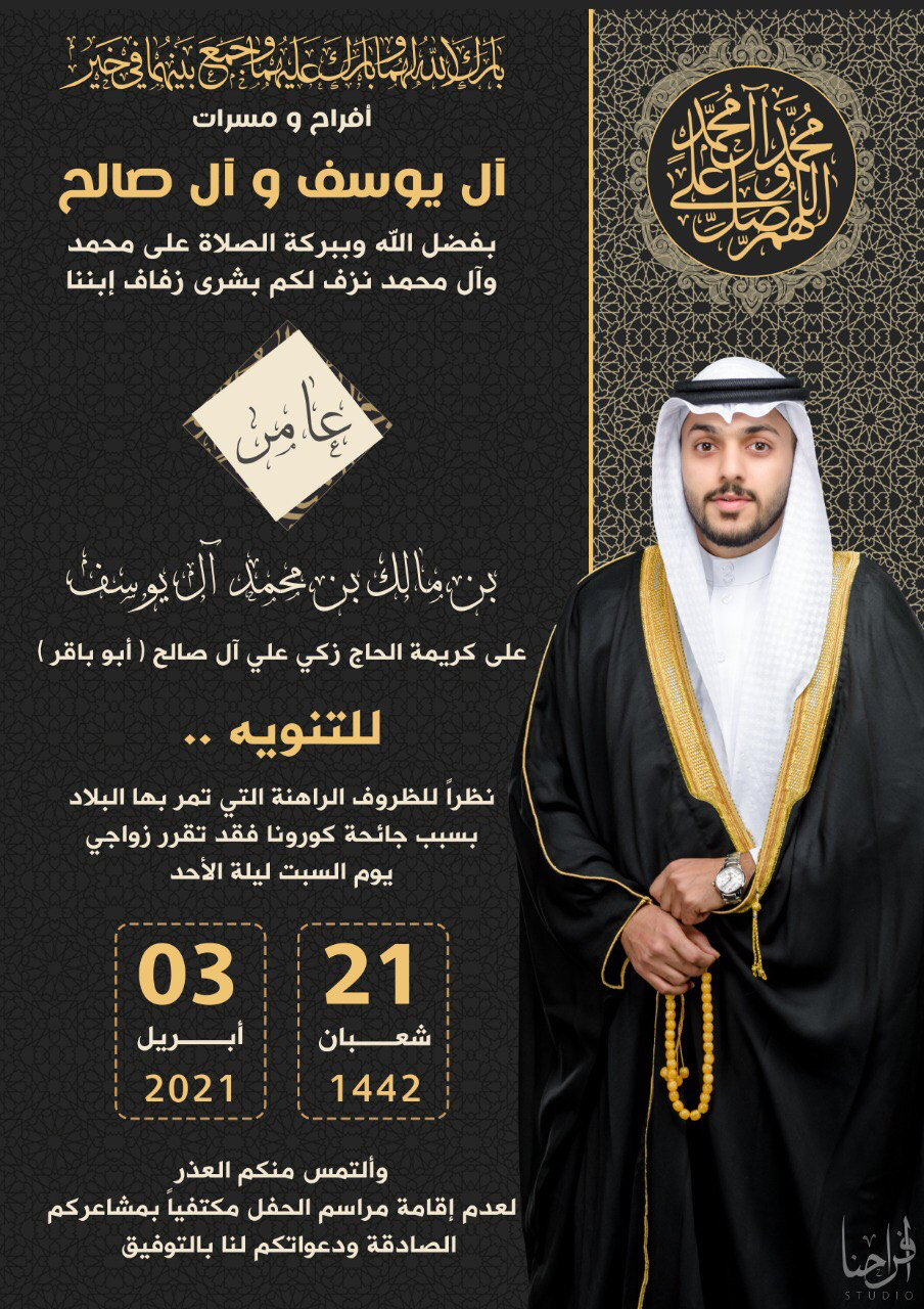 احتفلت عائلة آل يوسف وآل صالح في صفوى مساء يوم السبت بزفاف الشاب عامر مالك محمد آل يوسف على كريمة الحاج زكي علي آل صالح «أبو باقر» وسط فرحة الأهل والأصدقاء ومحبي العريسين.