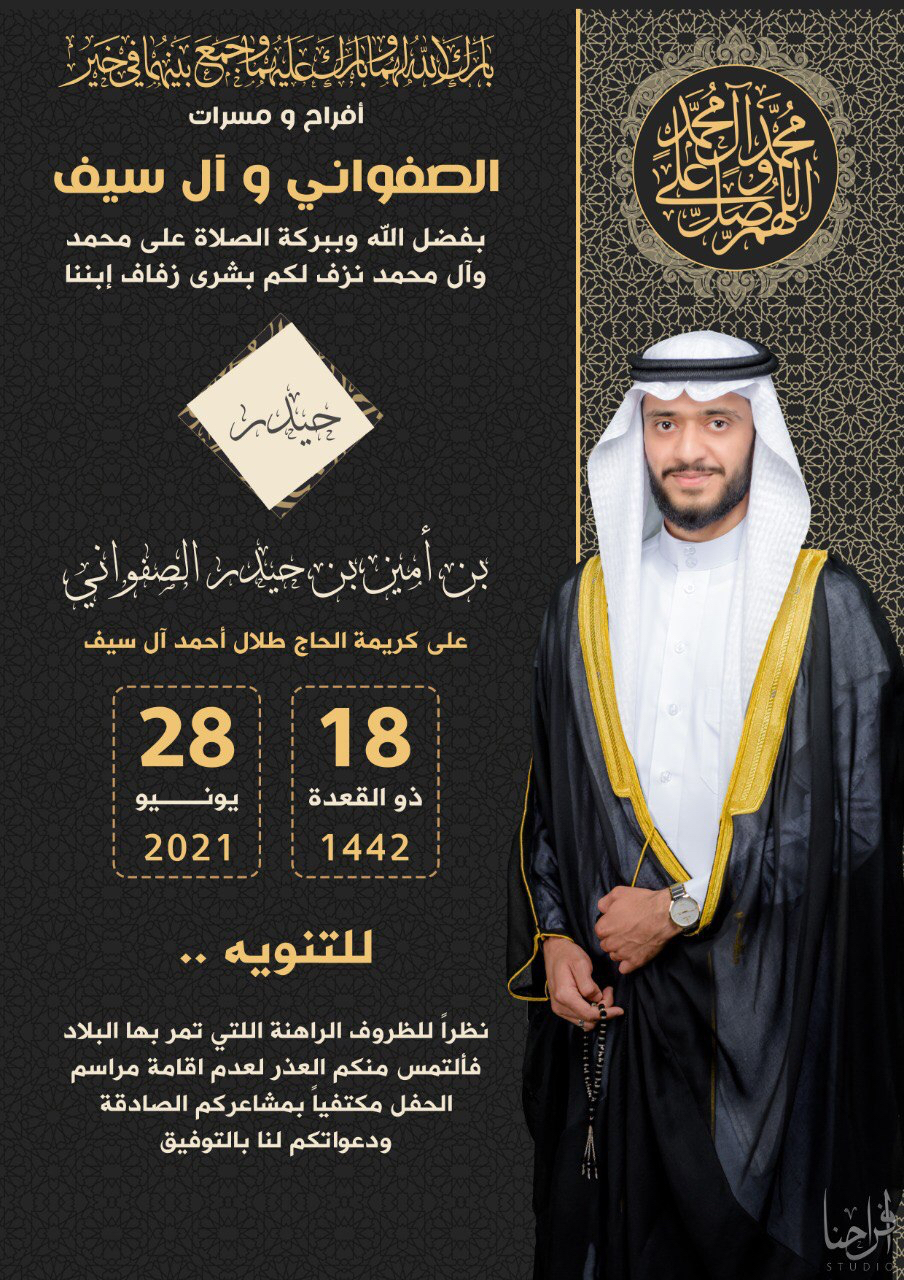 احتفلت عائلة الصفواني وآل سيف في صفوى مساء يوم الإثنين بزفاف الشاب حيدر أمين حيدر الصفواني على كريمة الحاج طلال أحمد آل سيف وسط فرحة الأهل والأصدقاء ومحبي العريسين.
