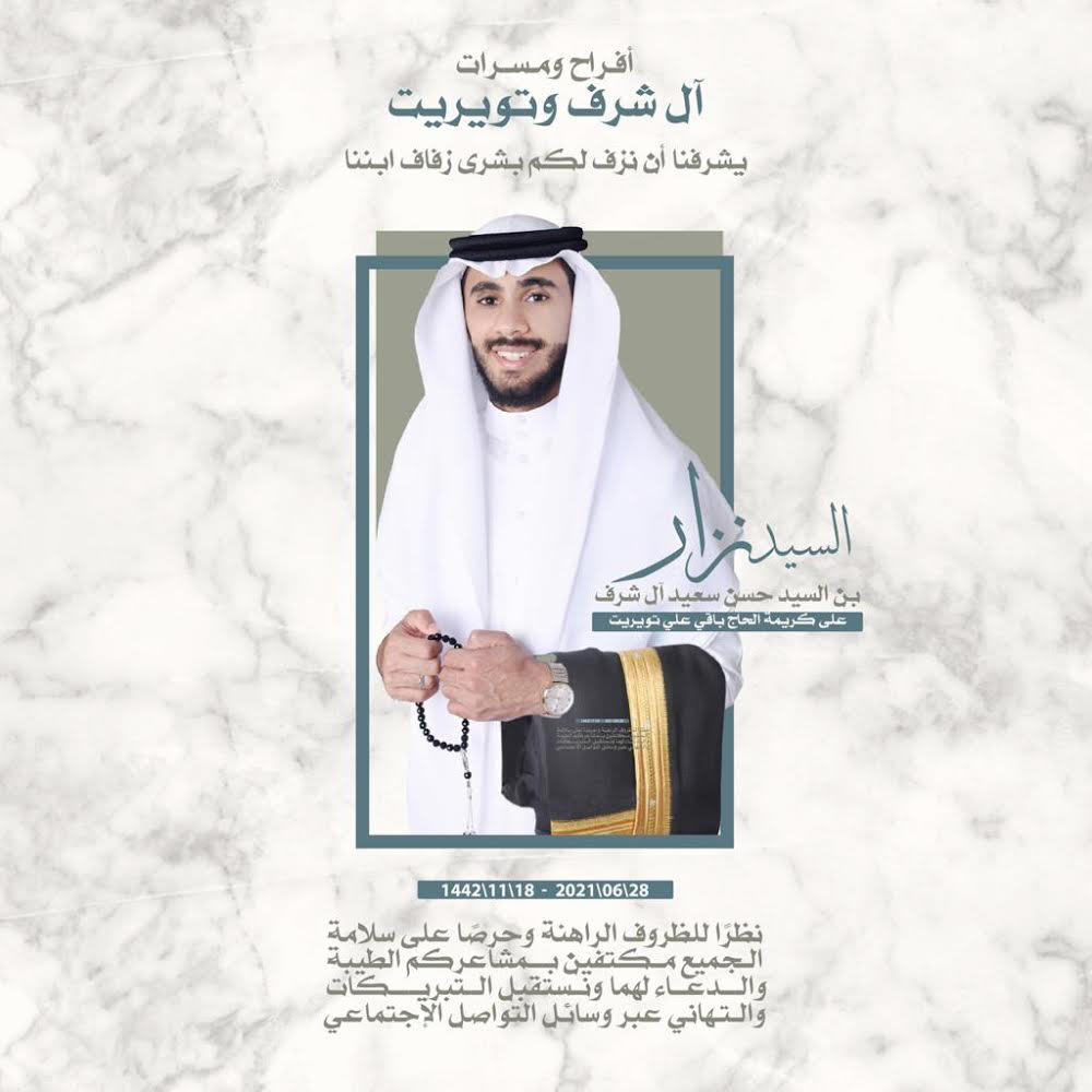 احتفلت عائلة آل شرف وتويريت في تاروت مساء يوم الإثنين بزفاف الشاب السيد نزار السيد حسن السيد سعيد آل شرف على كريمة الحاج باقي علي تويريت وسط فرحة الأهل والأصدقاء ومحبي العريسين.