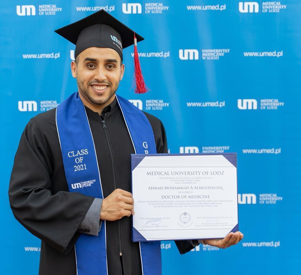 احتفل أحمد محمد علي المغلق بنيله درجة البكالوريوس بتخصص الطب والجراحة من جامعة ووج الطبية ببولندا.