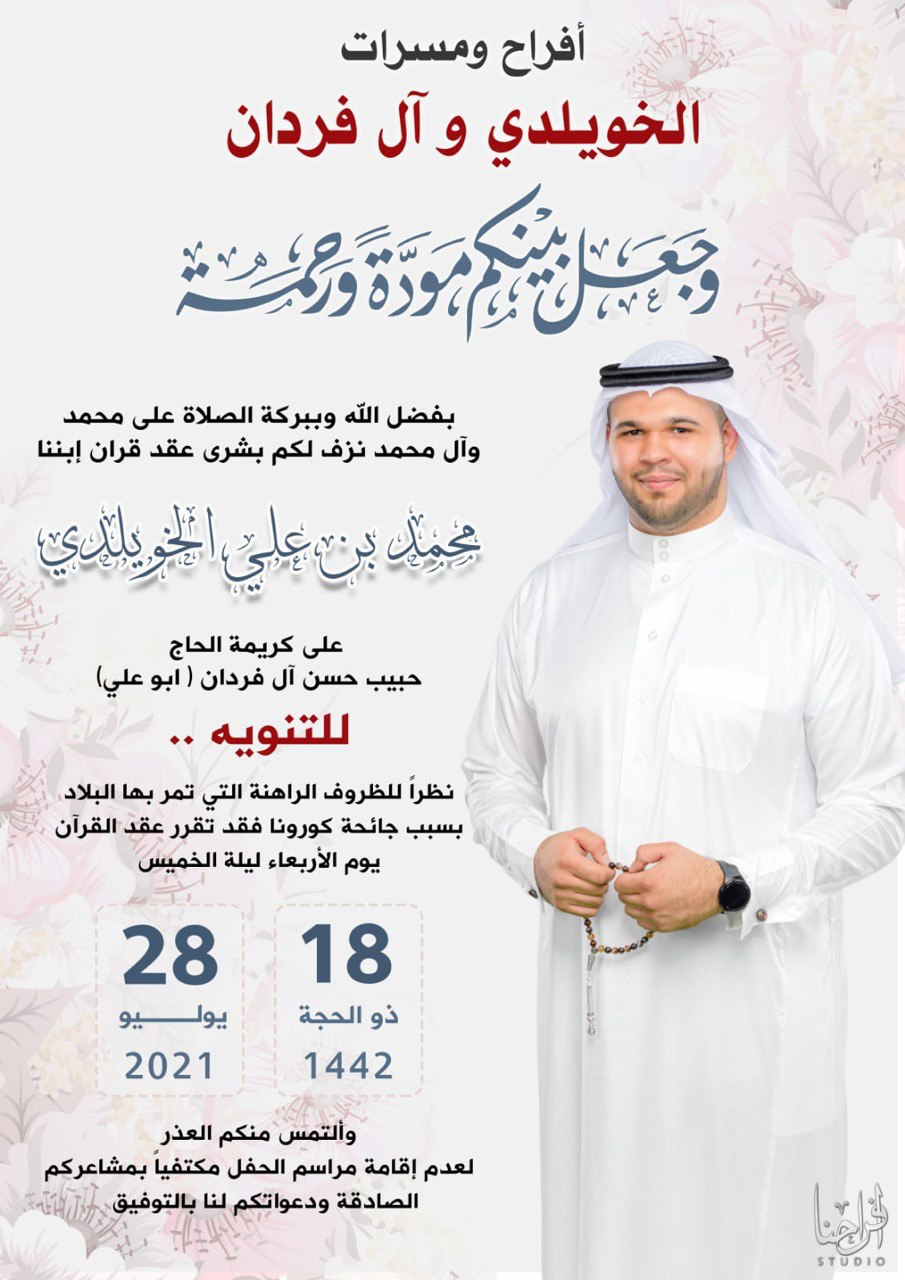 لنشر أخبار الأفراح والمواليد والمناسبات الإجتماعية في محافظة القطيف؛ يرجى التواصل عبر: