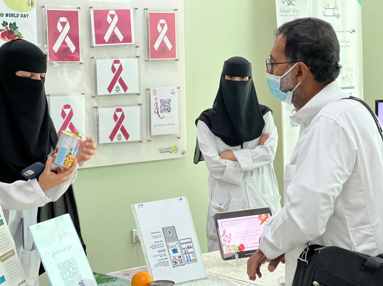 وعلى الصعيد ذاته، أقام مستشفى الجفر العام ممثلاً بقسم التغذية، يوم الخميس الماضي، معرضاً توعوياً عن سرطان الثدي في مبنى العيادات الخارجية، وتضمن المعرض التعريف بمرض سرطان الثدي، وأهمية الكشف المبكر، وسبل الوقاية منه باتباع نمط الحياة الصحي كالغذاء الصحي، وممارسة النشاط البدني، وتجنب السمنة وزيادة الوزن.