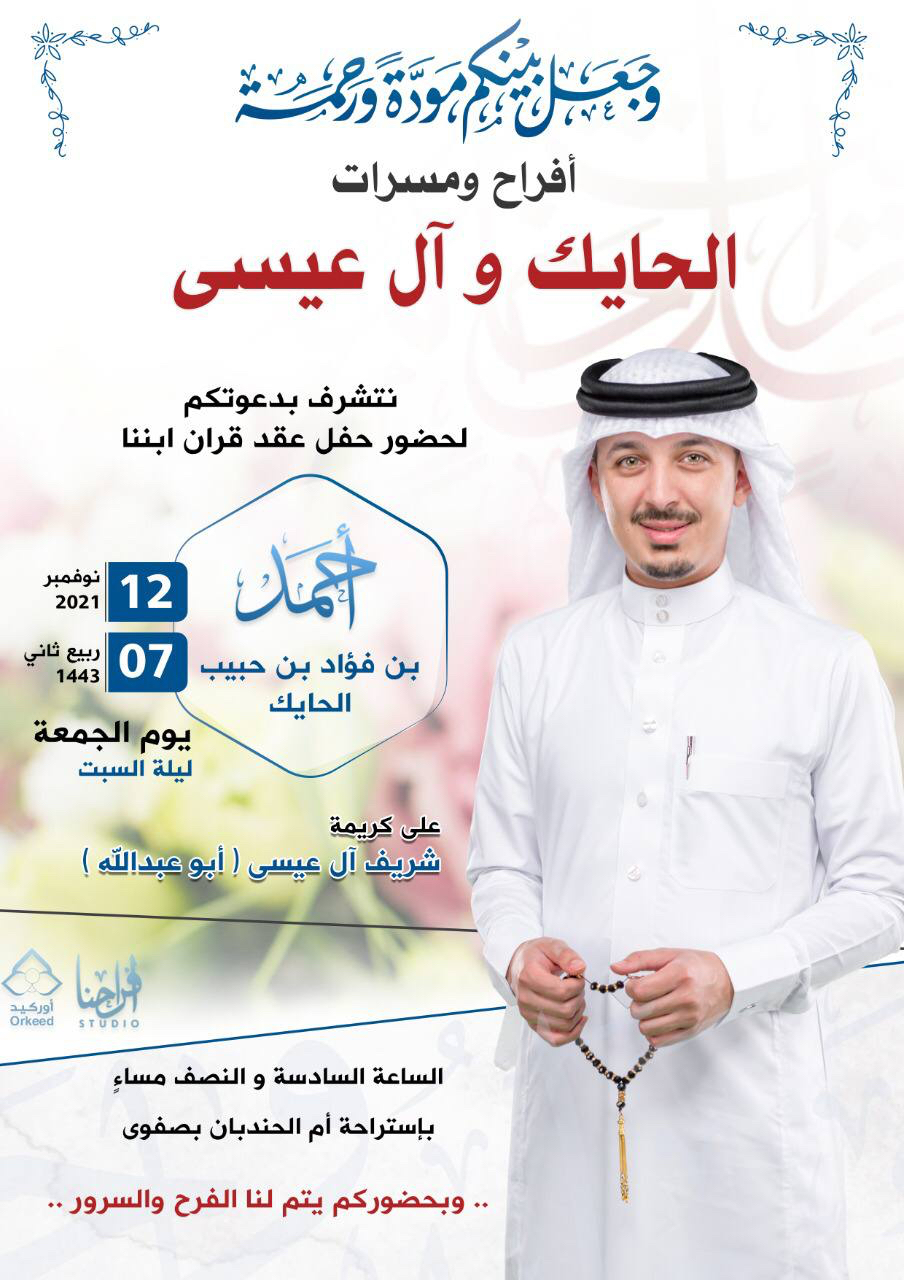 لنشر أخبار الأفراح والمواليد والمناسبات الإجتماعية في محافظة القطيف؛ يرجى التواصل عبر: