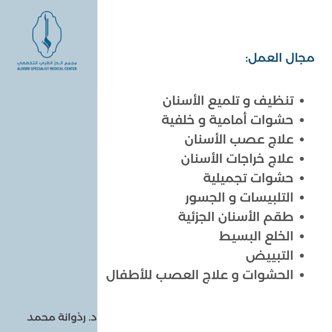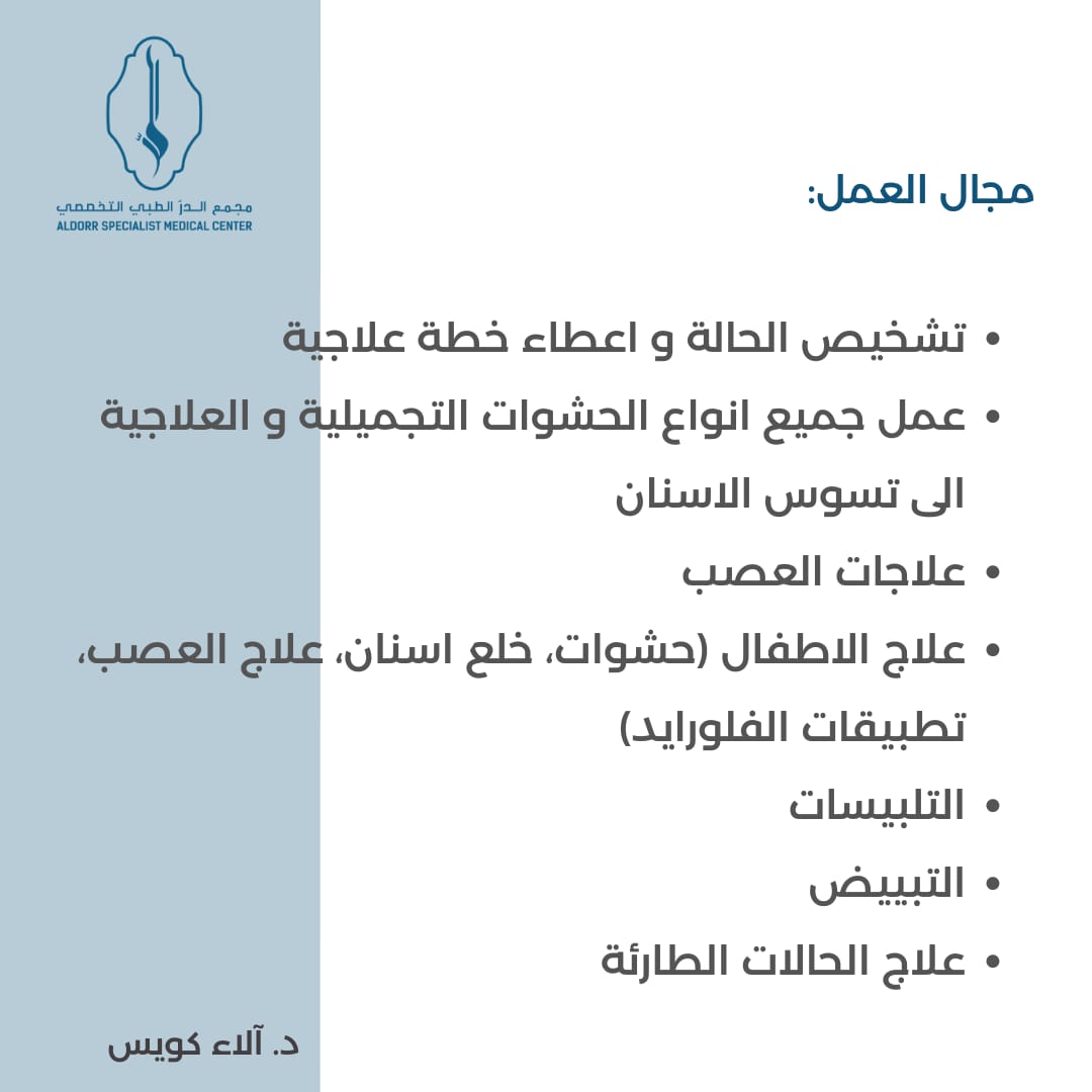 كما يسعد مجمع الدرّ الطبي التخصصي أن يعلن عن تواجد طاقم قسم الأسنان التالي: