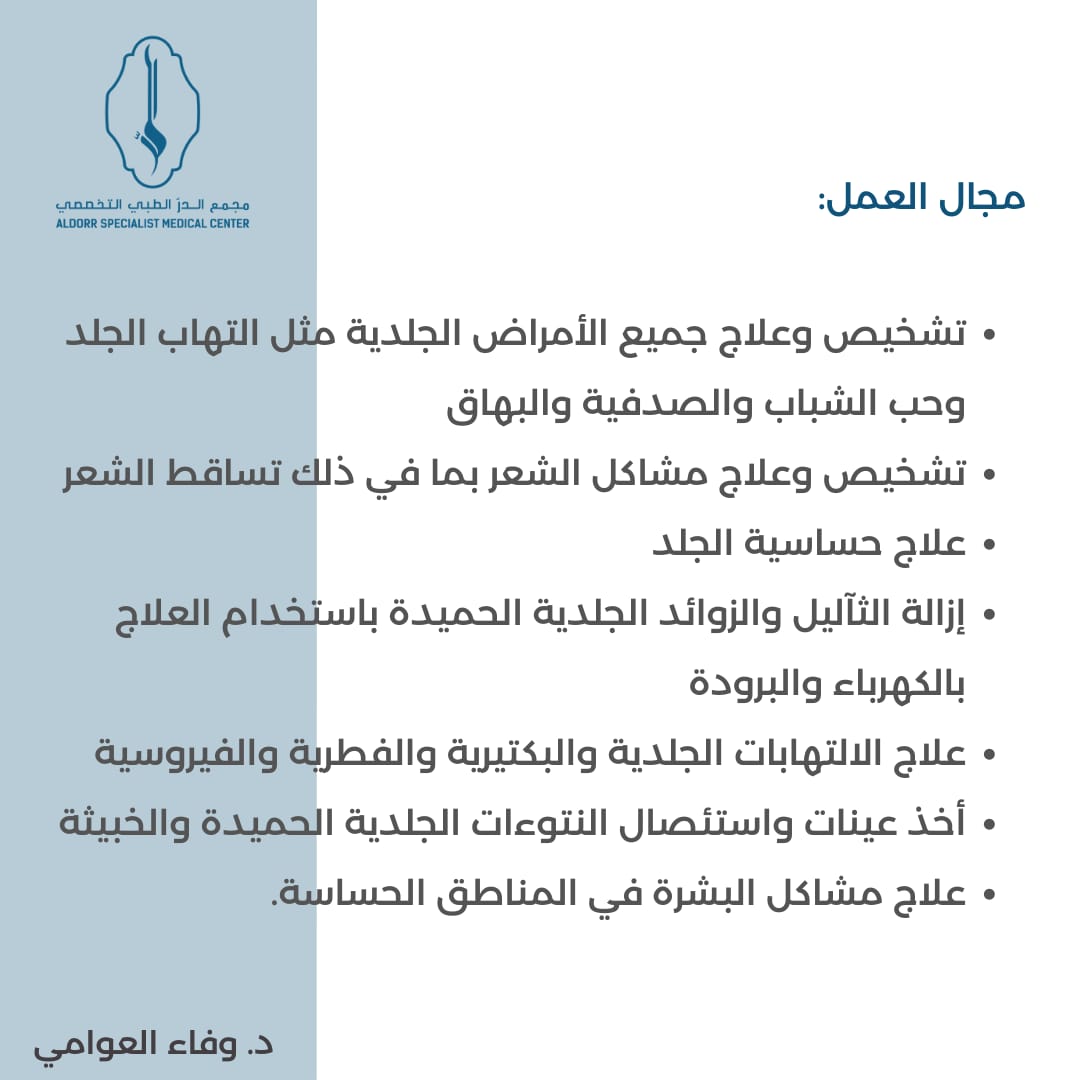 - خدمات قسم الجلدية والتجميل وفق أحدث ما توصلت إليه التكنولوجيا الطبية.