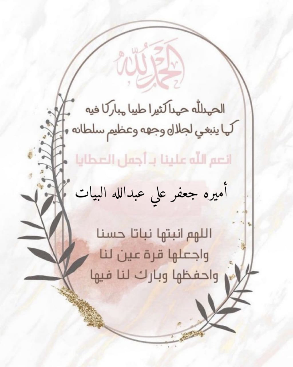 رُزق الشاب جعفر علي عبدالله البيات بمولودة اتفق وحرمه أميرة معتوق الشلاتي على تسميتها «أميرة».