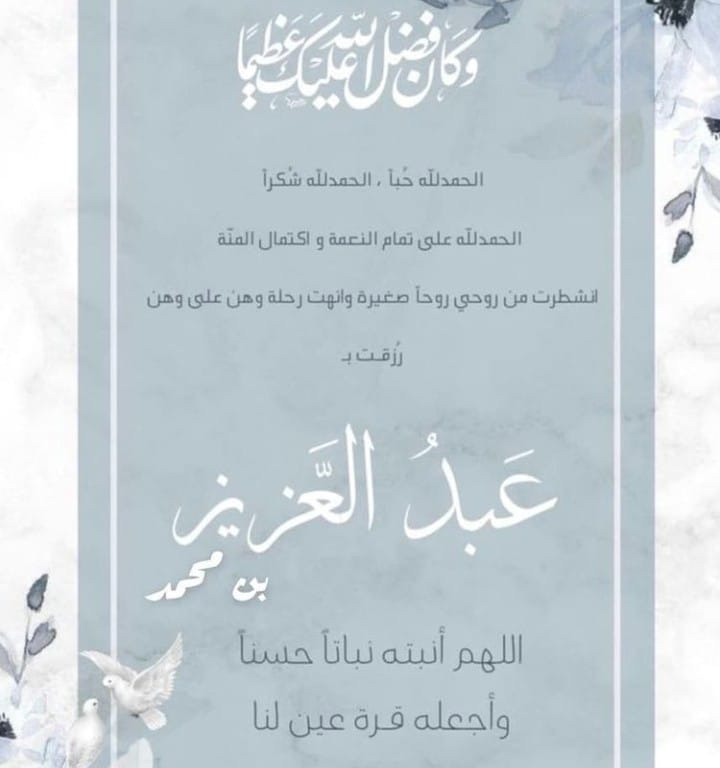رُزق الشاب محمد قاسم آل حبيب بمولود اتفق وحرمه على تسميته «عبد العزيز».