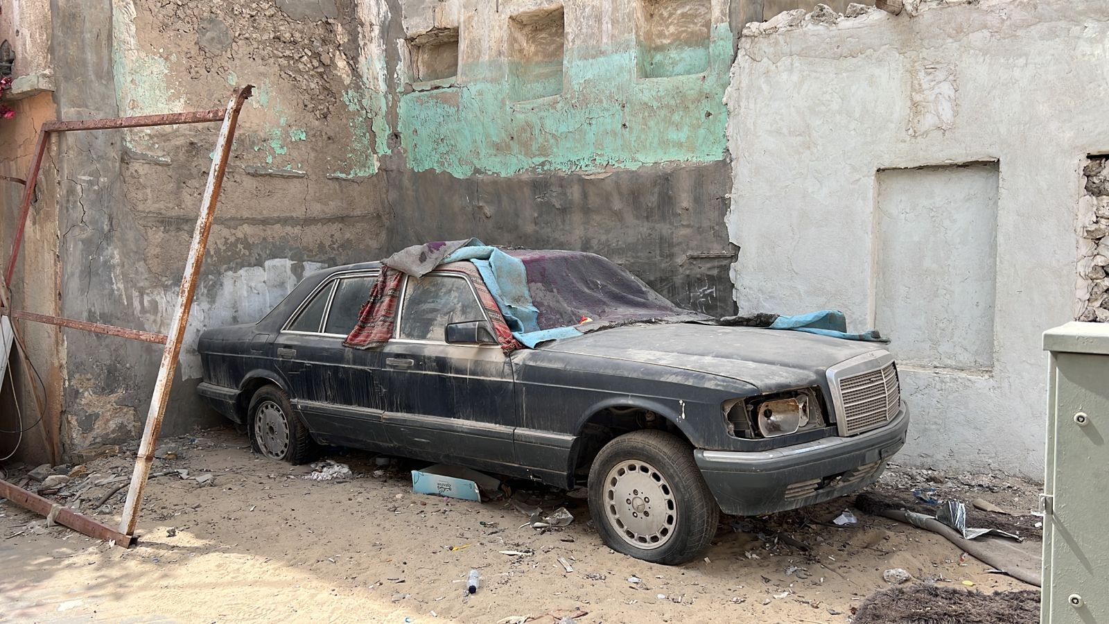 بينما كنتُ أتجول في منطقة تراثية بالقطيف وقعت عيناي مصادفةً على سيارة قديمة وتالفة من نوع ”مرسيدس“؛ فالتقطت صوراً لها لإبلاغ البلدية عنها كونها تشوّهاً بصرياً، وحينما التقطت صورة ”للسيارة التالفة“ من زاوية أخرى مع شجرة قُربها كانت يانعة بالزهور تحولت الصورة المشوهة للوحة جمالية!!