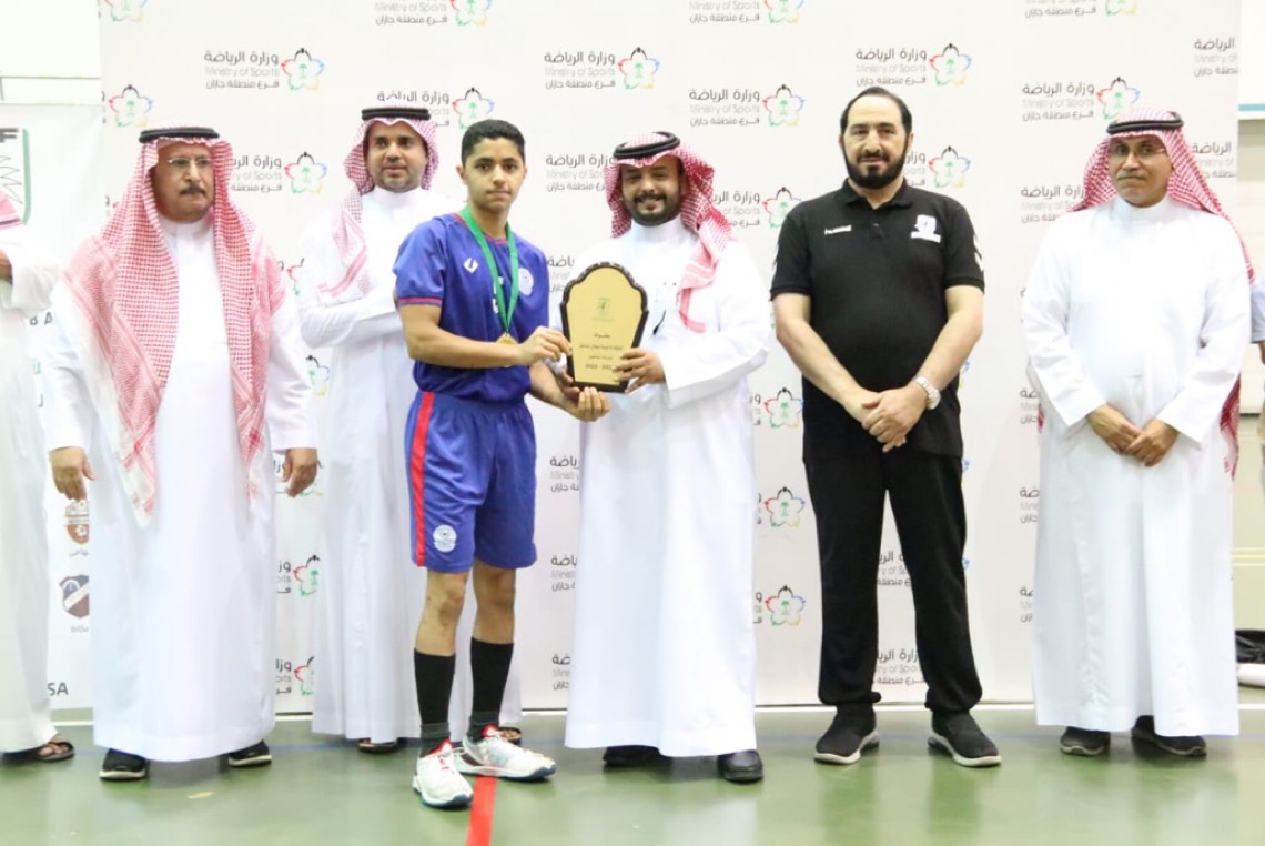 وفي ختام منافسات البطولة التي أقيمت على صالة مدينة الملك فيصل الرياضية بحازان على مدى ستة أيام وبمشاركة 8 فريق، تم تتويج فريق الخويلدية بدرع البطولة والميداليات الذهبية من قبل مساعد مدير فرع مكتب وزارة الرياضة بجازان المهندس سعد آل مسعود.