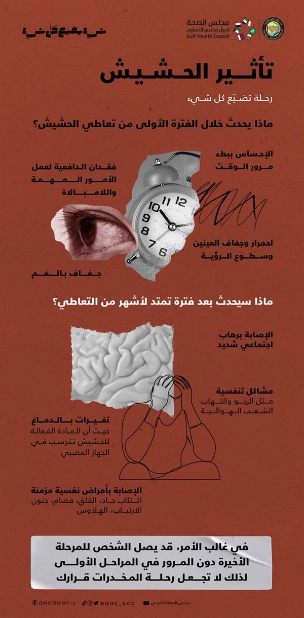 جدد مجلس الصحة لدول مجلس التعاون الخليجي، التحذير من أضرار تعاطي مادة الحشيش المخدر على جسم الإنسان والتي تصل إلى الاكتئاب الحاد.