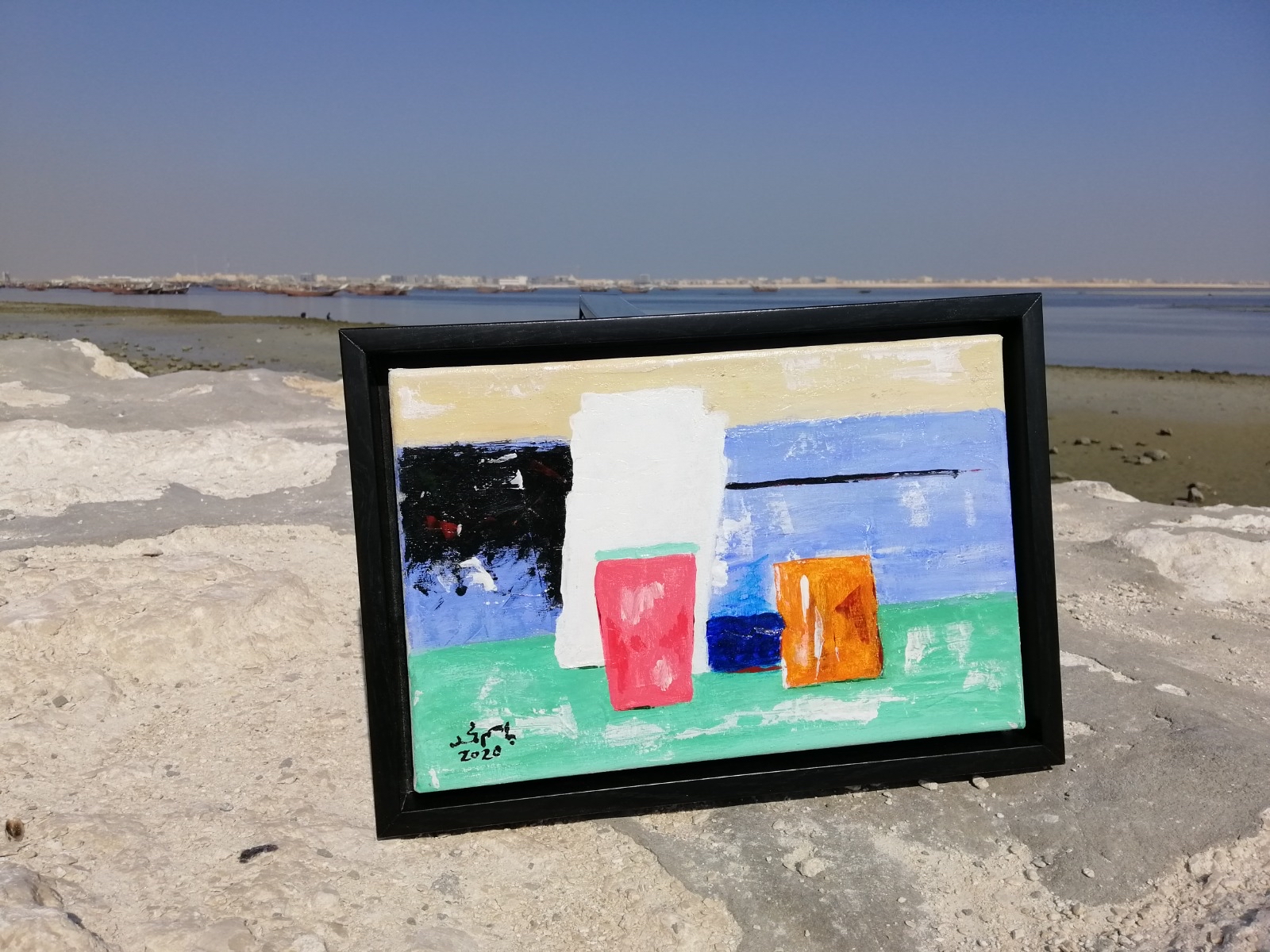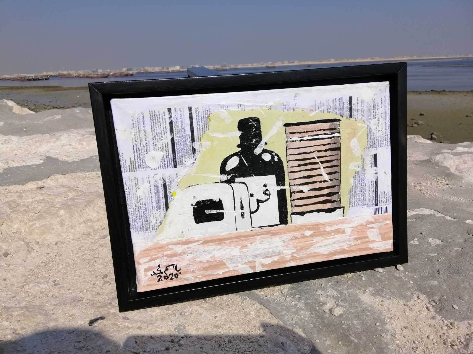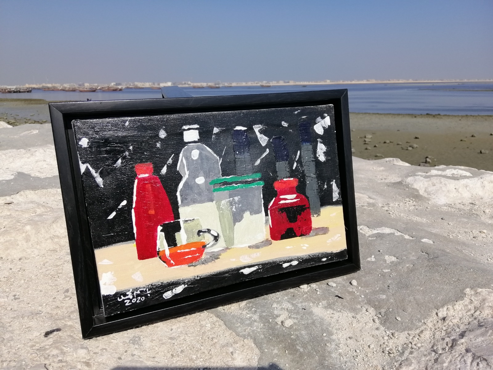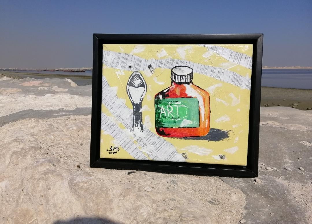 وأشار الفنان باسم جاسم الذي ينحدر من أسرة يغلبها الفن التشكيلي إلى أن لوحاته تم اقتنائها حيث بلغت مساحتها حوالي 24*30سم ولها وسائط مختلفة من الأدوات الفنية.