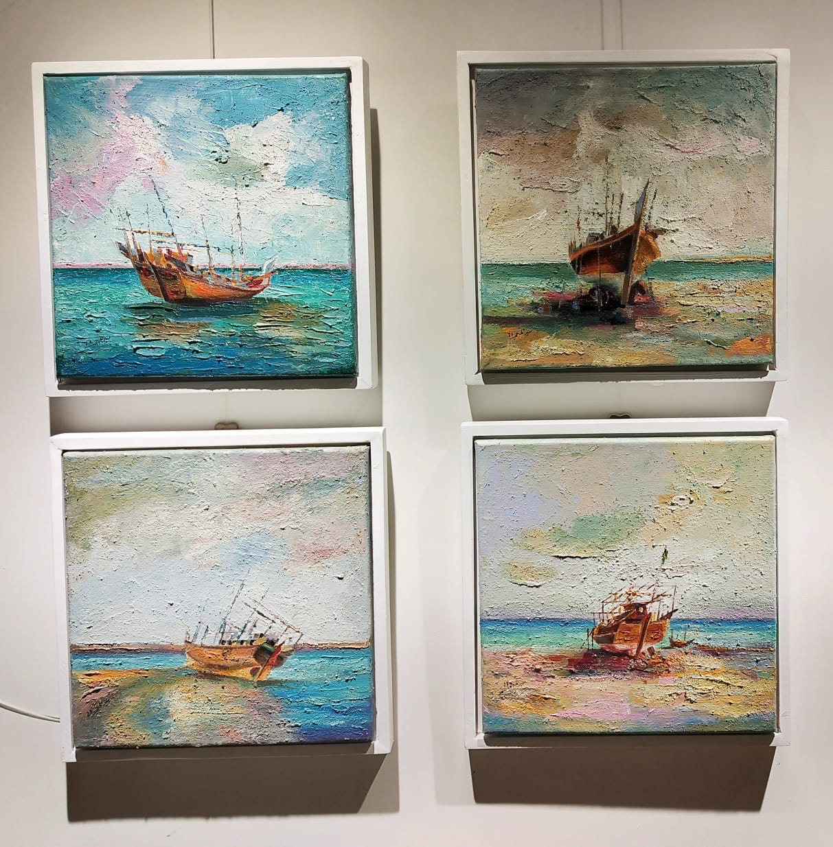 ولفت إلى أن قصة اللوحات الأربع تشترك في موضوع واحد متكامل لمرسى القارب الخشبي القديم الذي اندثر الآن وحل محله القوارب واللنجات المصنوعة من مادة الفيبر، مؤكدًا أنها أفقدت العنصر الجمالي في هذه القوارب.