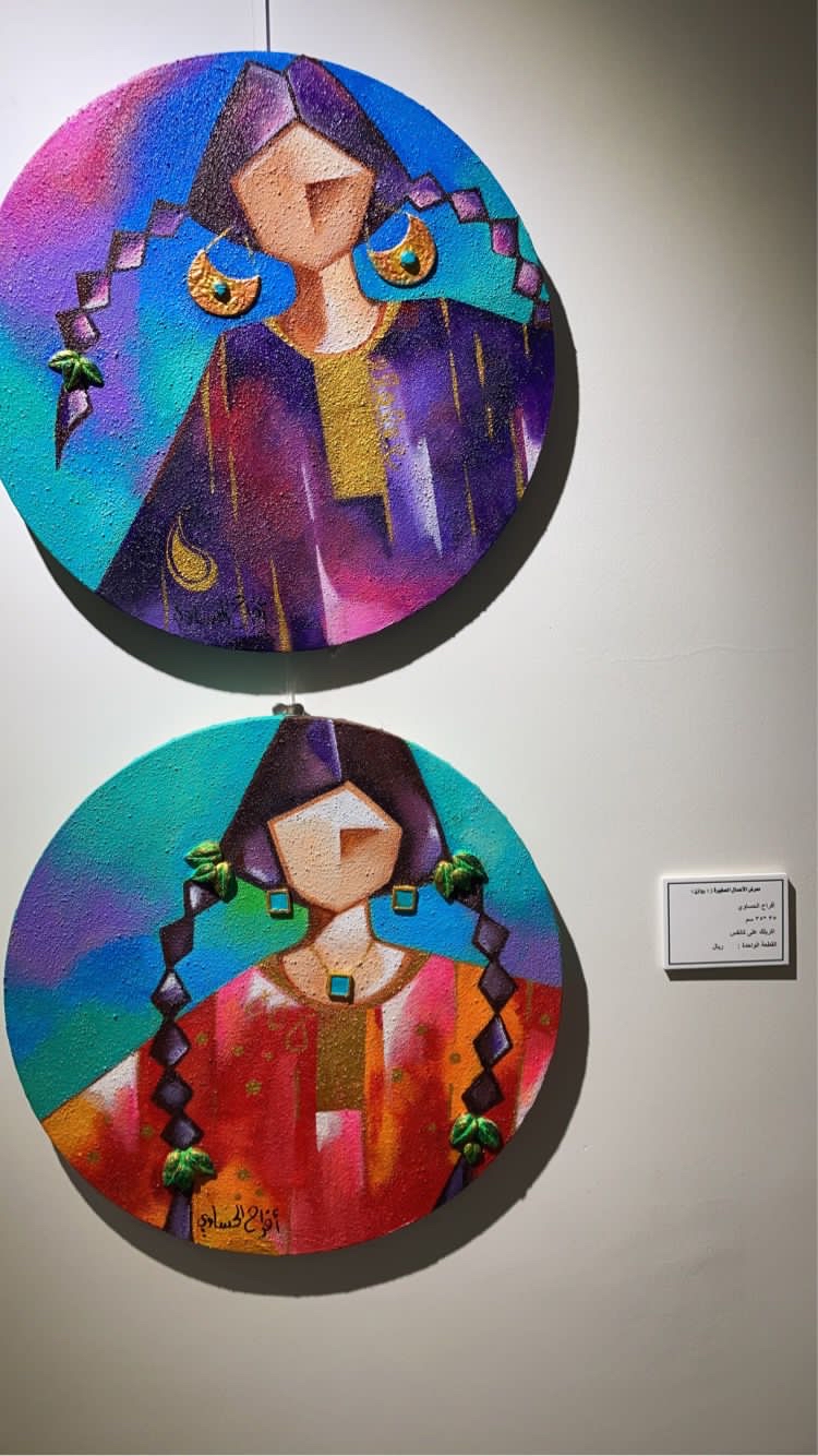 شاركت الفنانة أفراح الحساوي في معرض ”روازن 3“، والذي أقامته جماعة الفن التشكيلي التابعة لنادي الفنون بالقطيف بلوحتين أطلقت عليهما ”فرح“، مؤكدةً شغفها بالفلكلور الشعبي السعودي والموروث الجميل للقطيف.