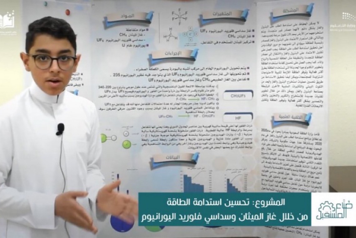وقال الطالب: إن مشروعه يشمل تحسين استدامة الطاقة، من خلال غاز الميثان، وغاز سداسي فلوريد اليورانيوم، وذلك نظرًا لعدم استدامة الطلب على البترول والغاز الطبيعي، بسبب أنها موارد غير متجددة.