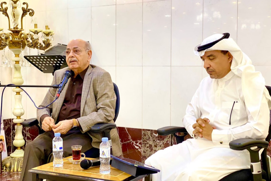 وألقى رئيس الملتقى الشاعر أحمد اللويم، كلمة ترحيبية بالضيف، نوه فيها بمكانة الضيف الأدبية، وأداره اللقاء عضو الملتقى الشاعر زكي السالم، مرحبًا بالأديب والحضور.