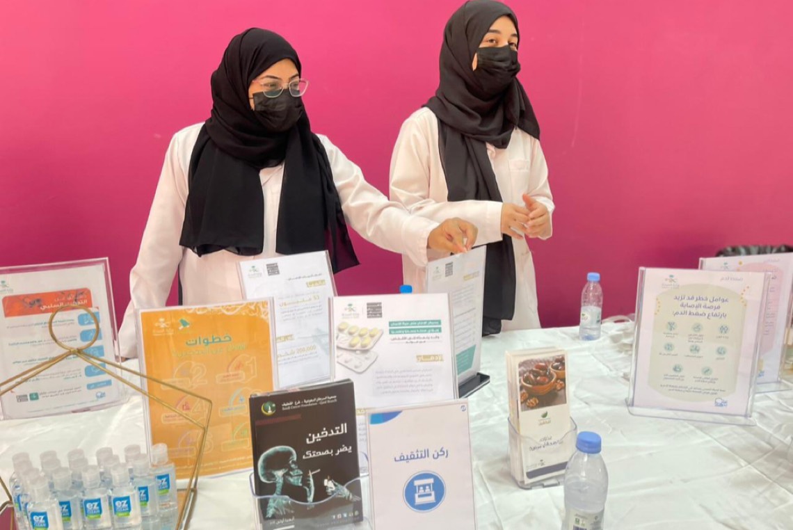 كما قام قسم التثقيف الصحي بمراكز الرعاية الصحية بالقطيف، بتفعيل حملة ارتفاع ضغط الدم وركن إعرف أرقامك بجانب ركن توعوي عن الإدمان وطرق الوقاية والعلاج. في كلية لينكون بالقطيف.